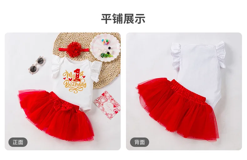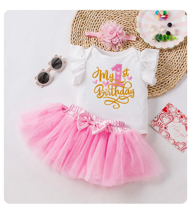 Baby Girl Clothes My First Birthday Dress Cute Pink Dresses + Romper Outfits Toddler Girls Summer Clothes Jumpsuit for Party 3