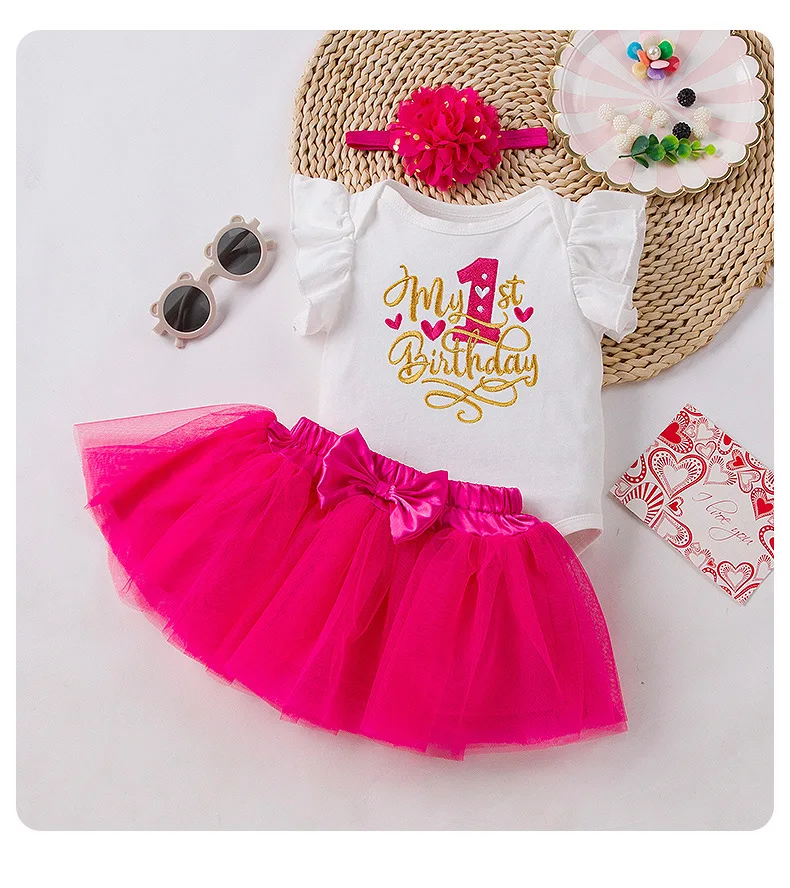 Baby Girl Clothes My First Birthday Dress Cute Pink Dresses + Romper Outfits Toddler Girls Summer Clothes Jumpsuit for Party