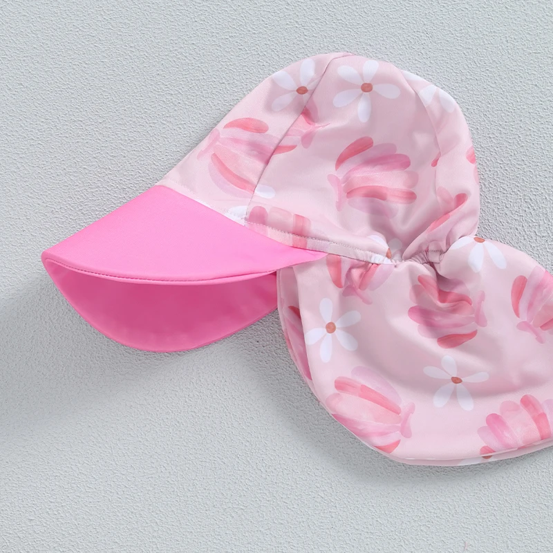 Baby Girl Rash Guard Swimsuit Short Sleeve Scallop Shell Print Bathing Suit Infant Swimwear with Sun Hat