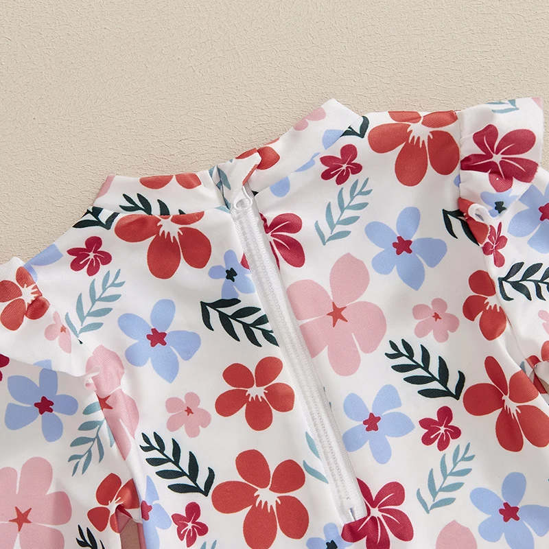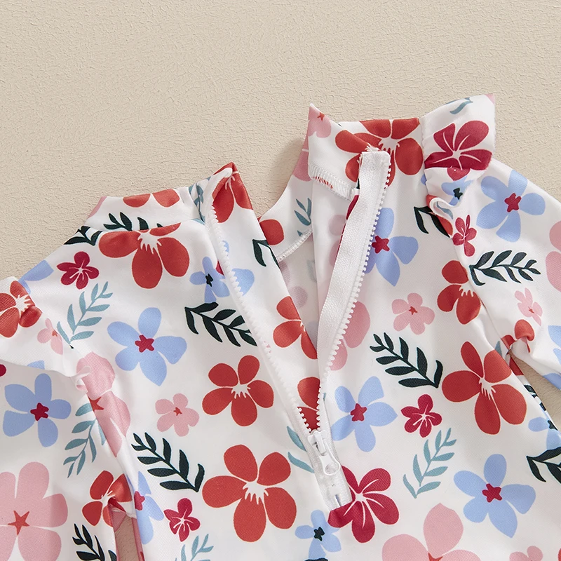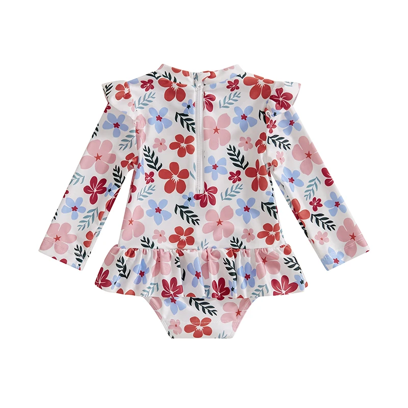 Baby Girl Rash Guard Swimsuits Cute Long Sleeve Floral Print Skirted Bathing Suit Toddler Swimwear