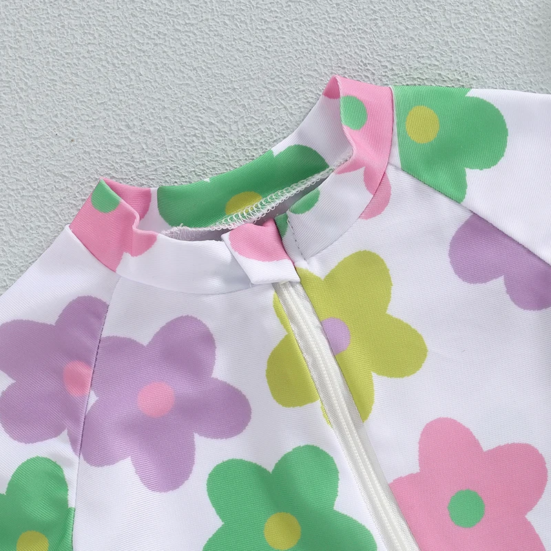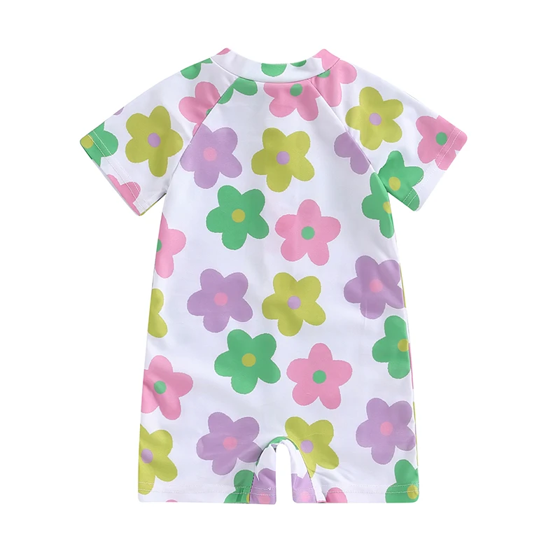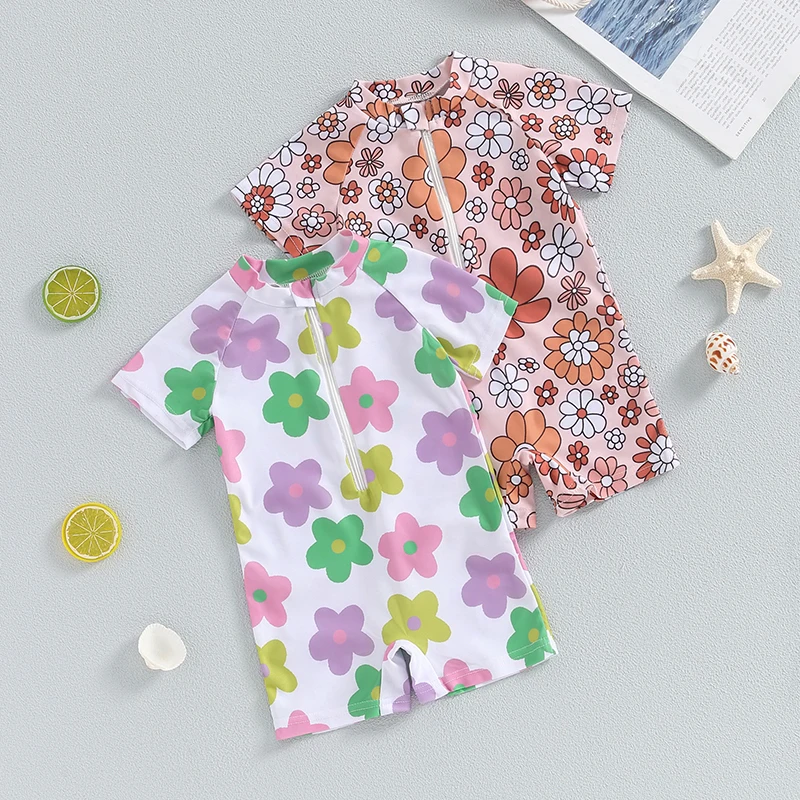 Baby Girl Swimwear Summer Floral Print Short Sleeves Swimsuits for Toddler Bathing Suits Beachwear