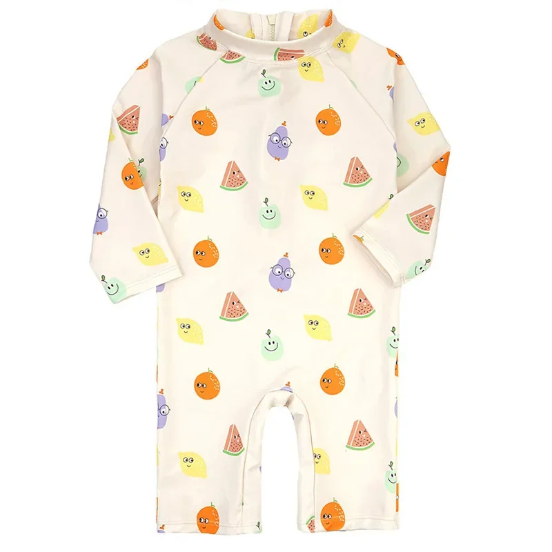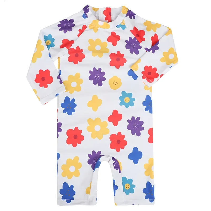 2024 New Girls Swimsuit One-piece Swimwear UPF50+ Print Baby Long Sleeve Kids Toddler Infant Beach Bathing Suits Children 1