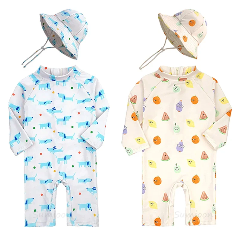 Baby Girls Swimsuit Long Sleeves One Piece Swimwear for Kids Toddler Cartoon UPF50+ Rash Guards Infant Bathing Suit Korea Sets 2