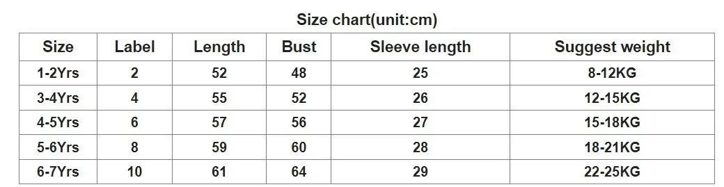 Size chart(unit:cm)
