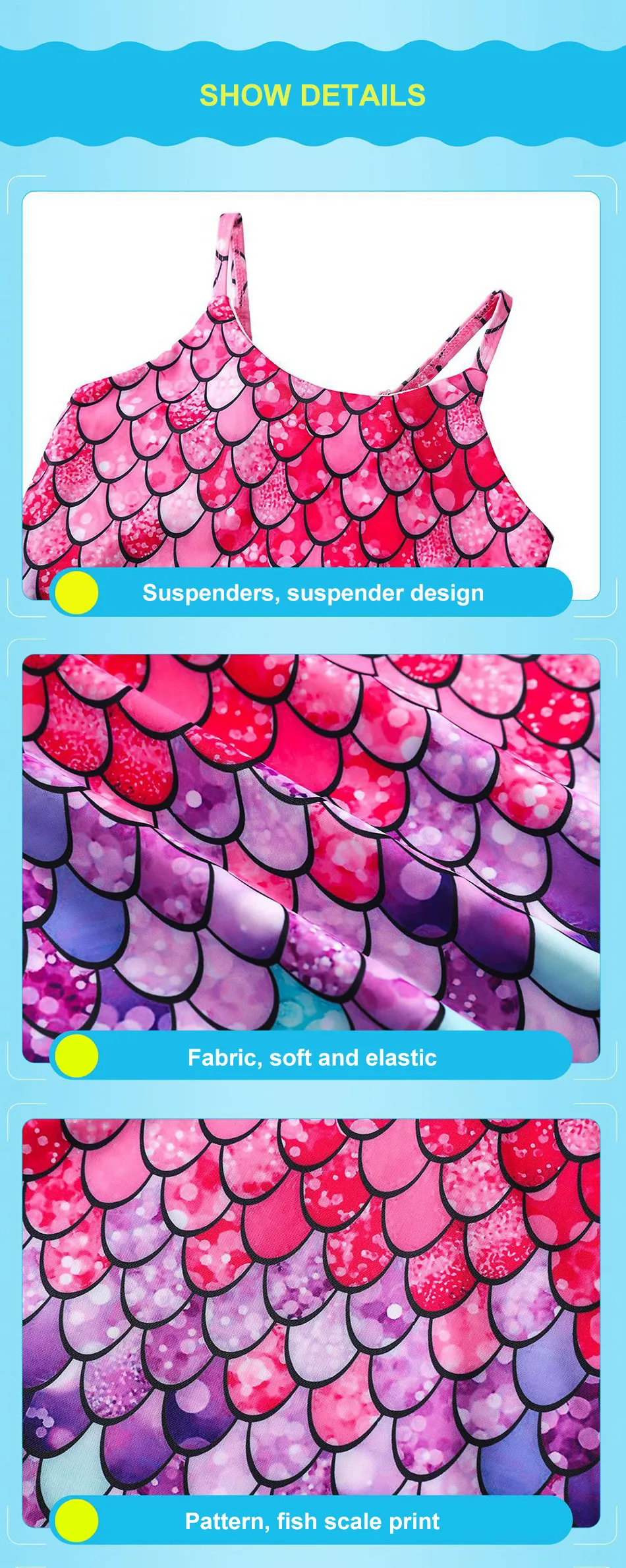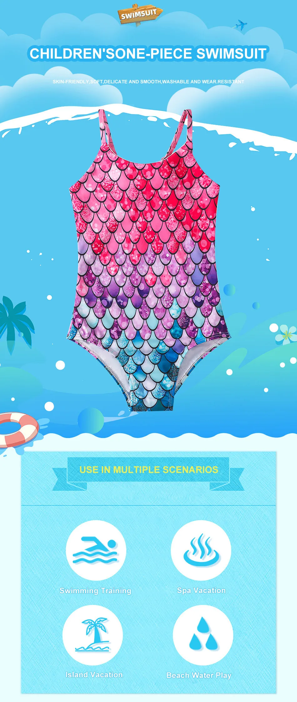 Name: Baby Swimwear Girl Summer Swimming Beachwear Children Pool One Piece Kids Mermaid Clothes Sleeveless Straps Swimsuit 3-10 Years