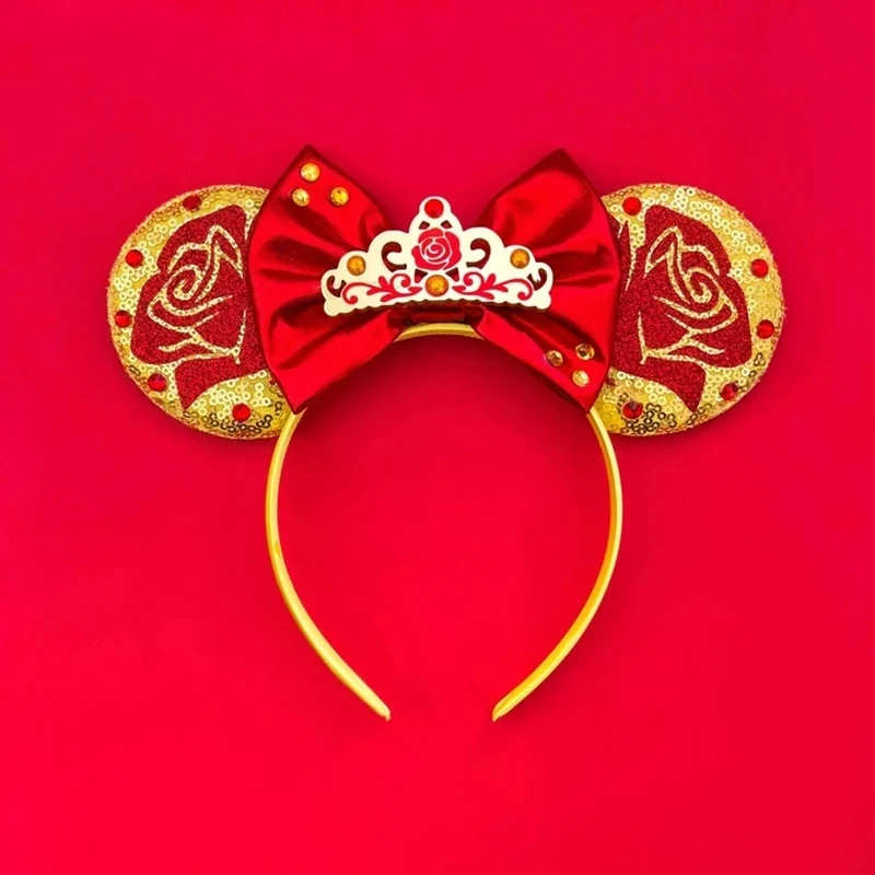 Home Babies & Kids Kids' Accessories Accessories Beauty and Beast Baby Headbands Girls Belle Hair Accessories Enchanted Rose Ear Hairband Kid Crown Bow Headwear Baby Photography