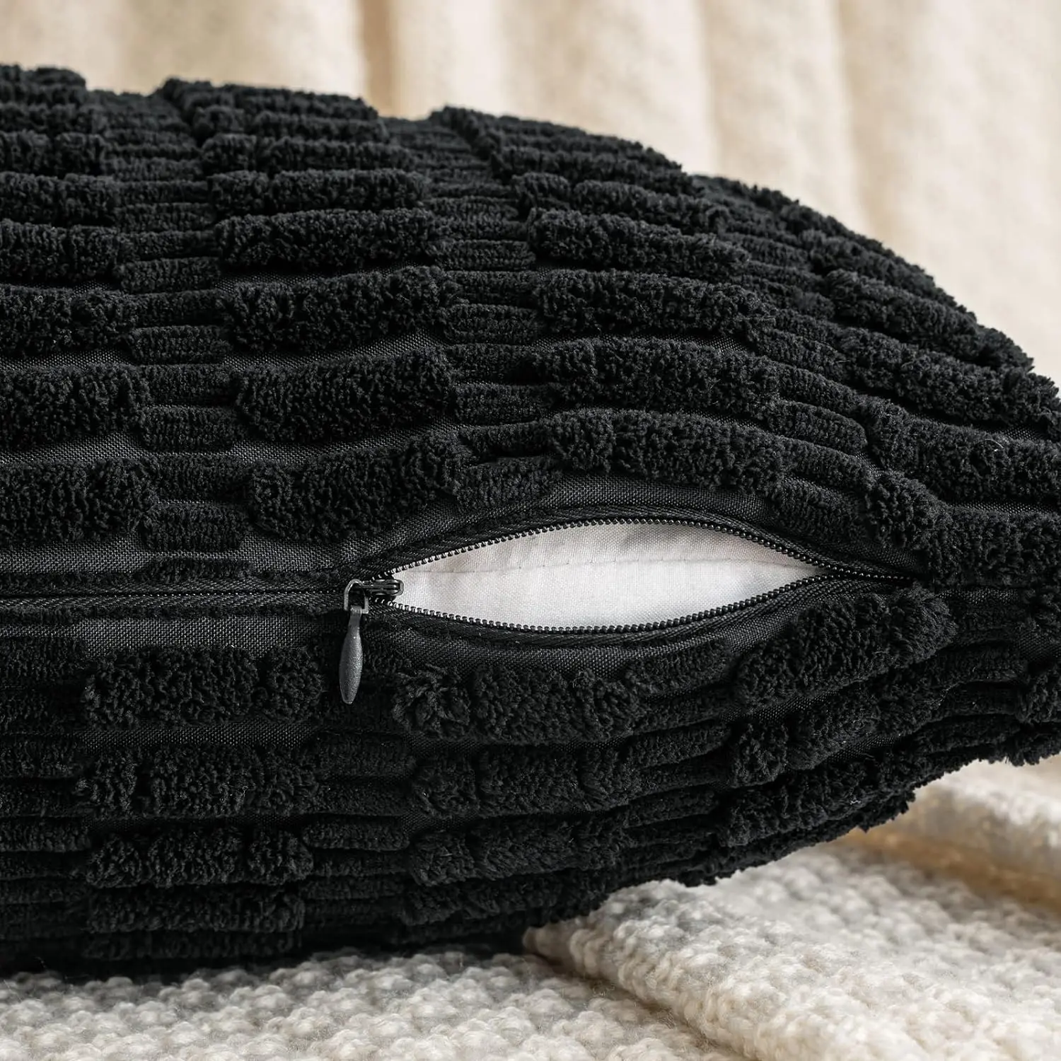 Black Corduroy Throw Pillow Cover 18×18 Inch Soft Striped Cushion Cover Square Cushion Case Pillow Cotton Cover White Pillowcase