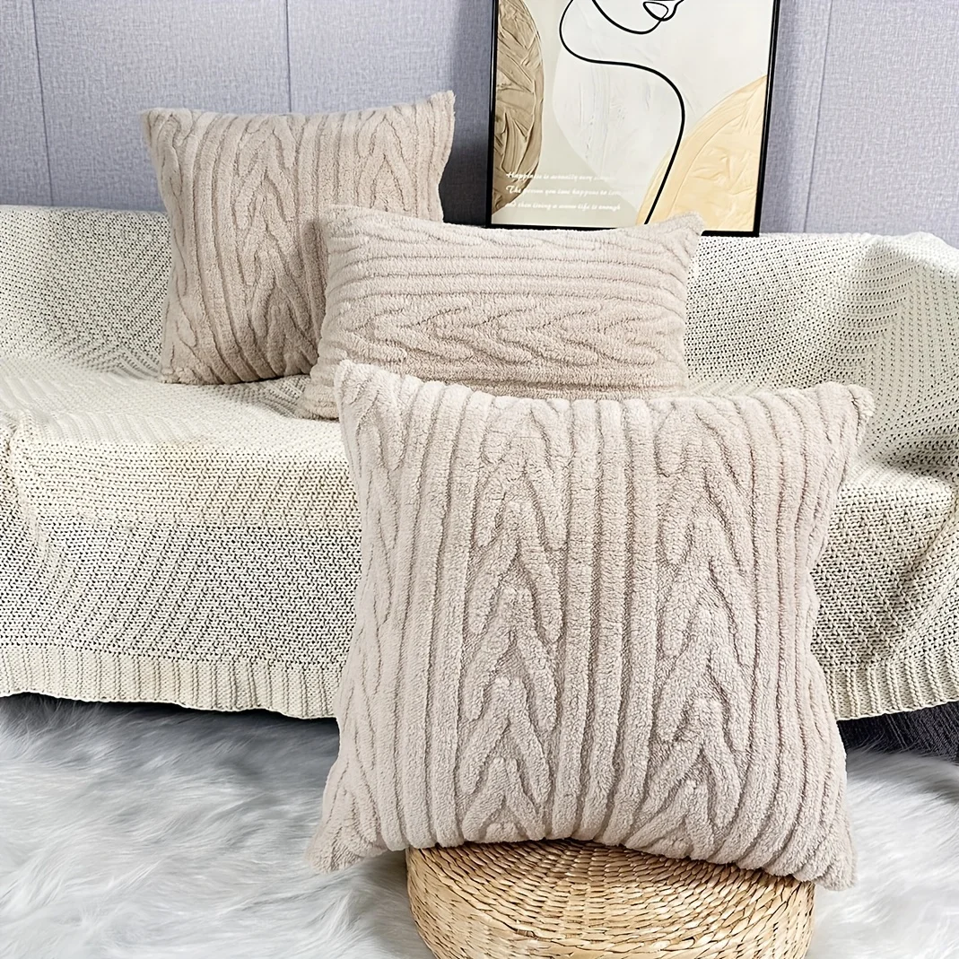 Boho Soft and Cozy Plush Faux Wool Velvet 30×50/45x45CM Cream White Throw Pillow Cover for Bedroom and Living Room Decor