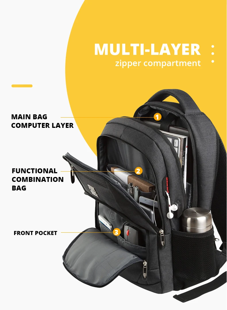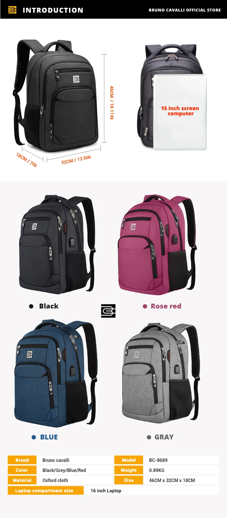 • Storage Space & Pockets:One separate laptop compartment hold 15.6 Inch Laptop as well as 15 Inch,14 Inch and 13 Inch Macbook/Laptop.One spacious packing compartment roomy for iPad,mouse,charger,binders,books,clothes,ect.Mesh pockets at side for water bottle and compact umbrellamake your items organized and easier to find.