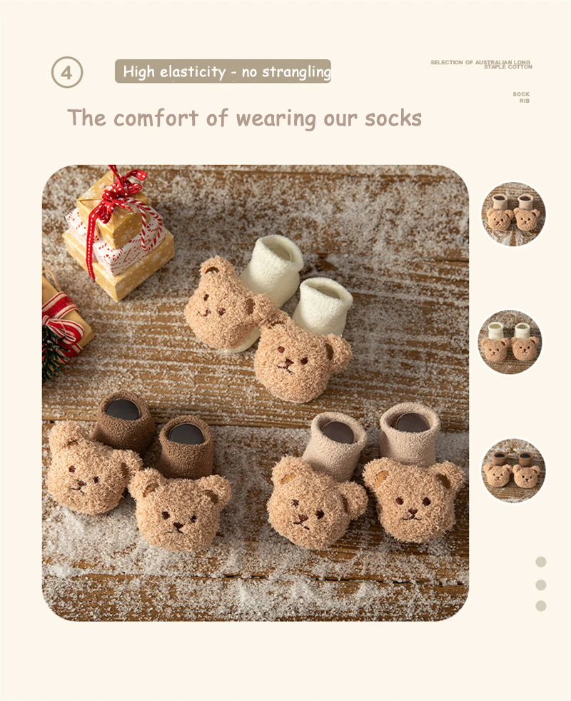 Cartoon Bear Baby Socks Girls Boys Newborn Anti Slip Soft Warm Winter Autumn Toddler Indoor Floor Thick Socken Infant Stockings 4