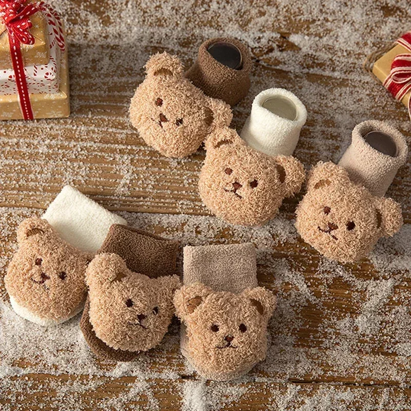 Cartoon Bear Baby Socks Girls Boys Newborn Anti Slip Soft Warm Winter Autumn Toddler Indoor Floor Thick Socken Infant Stockings 3