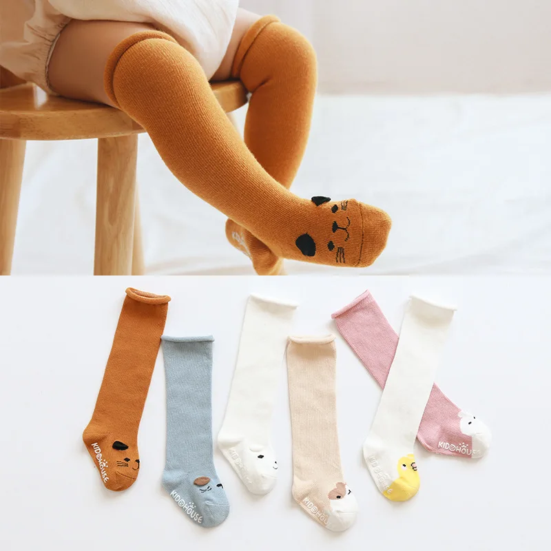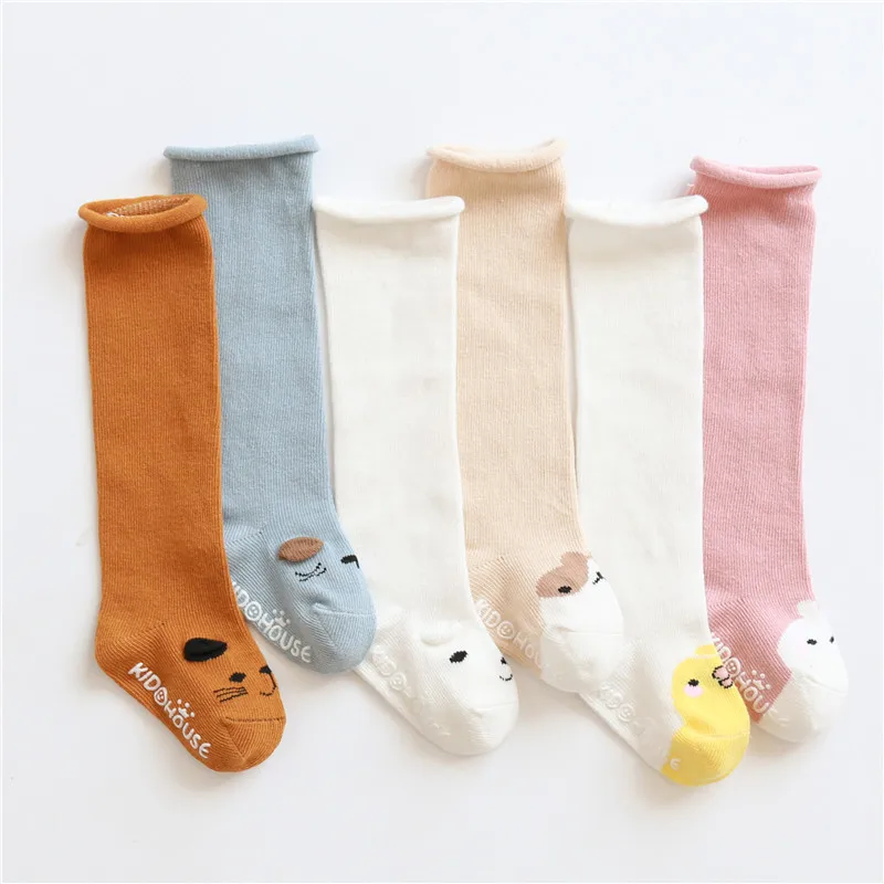 Cartoon Children Long Socks Soft Cotton Baby Knee Protection Stockings Solid Color Toddler Anti Slip Floor Sock Kids Sokken Sox
