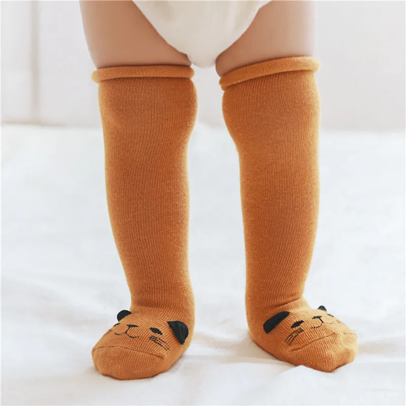 Cartoon Children Long Socks Soft Cotton Baby Knee Protection Stockings Solid Color Toddler Anti Slip Floor Sock Kids Sokken Sox 1