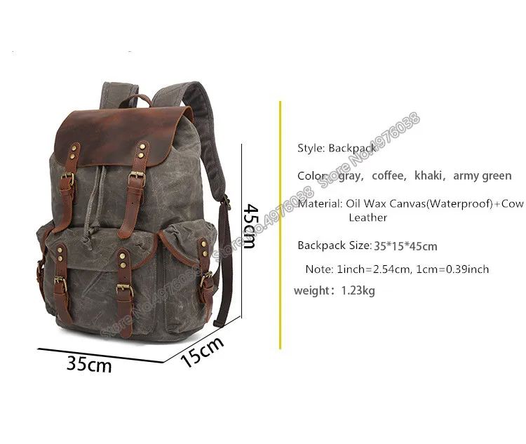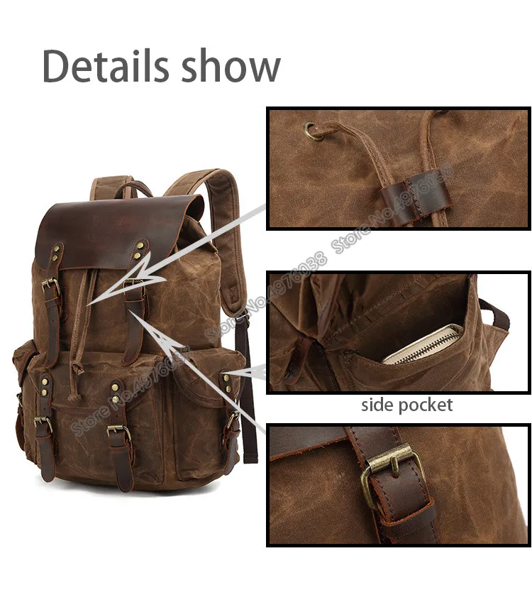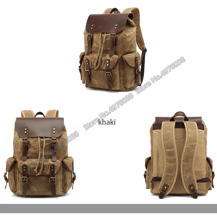 Fashion Canvas Men’s Backpack Wearproof Vintage bag laptop Backpack Leather School Bag for teenage Portable Travel Bag