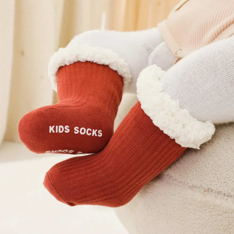 Children’s Baby Girls Boys Casual Calf Length Socks Fashion Solid Color Pitted Lamb Wool Stockings 6 Months-5 Years 4