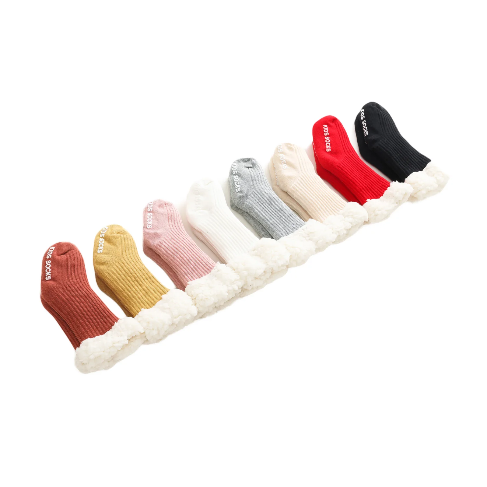 Childrens warm super thick lamb cashmere calf length socks — These soft and stretchy socks look thick and cozy for a casual cold weather look, but without any heaviness feeling. It will be the perfect complement to all your boys and girls favorite four season looks!