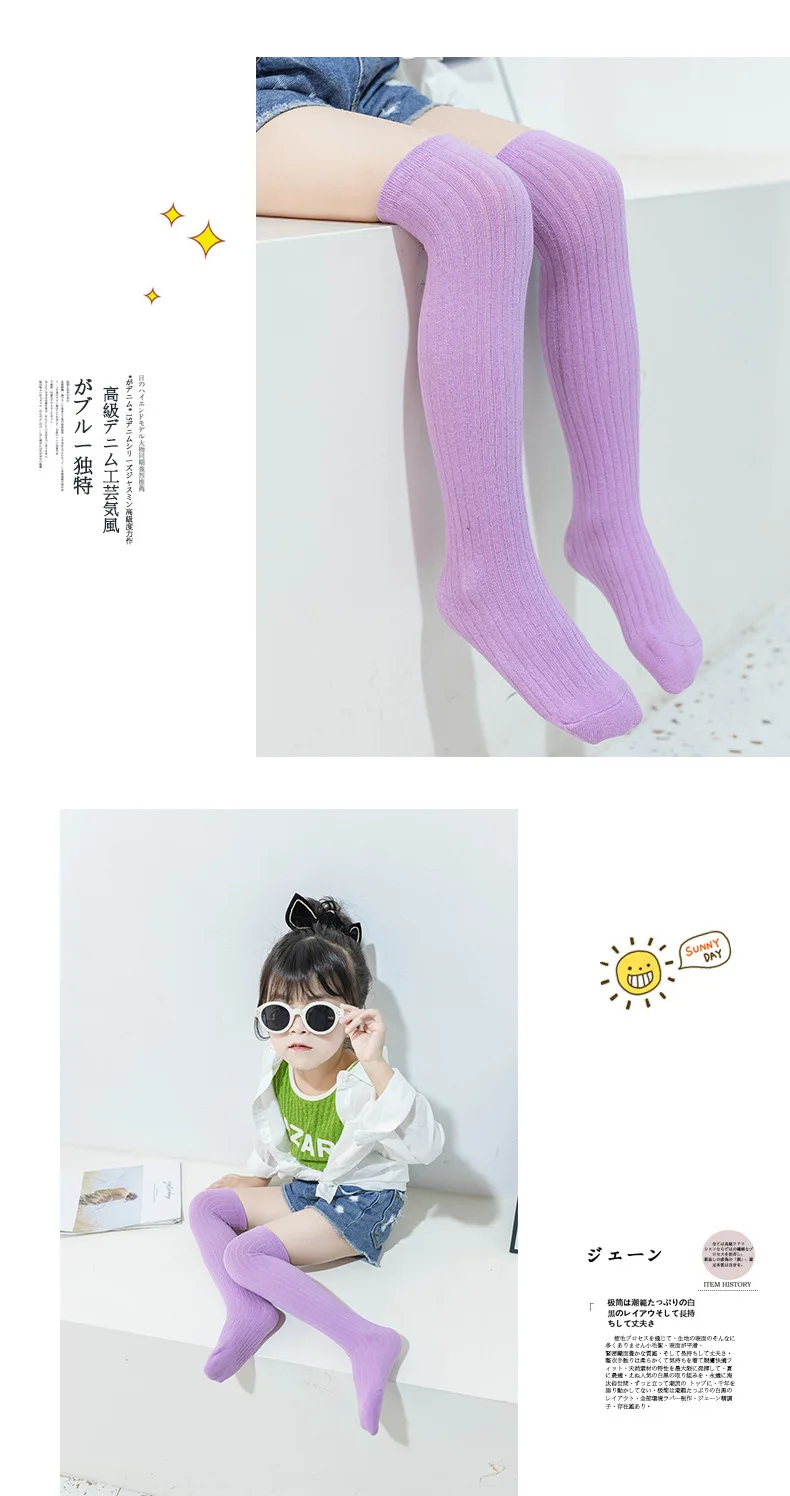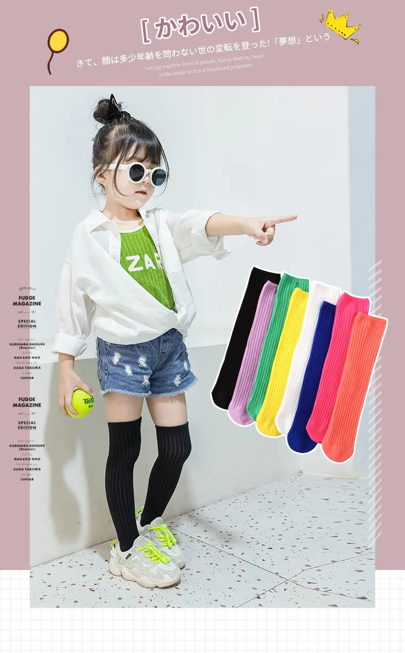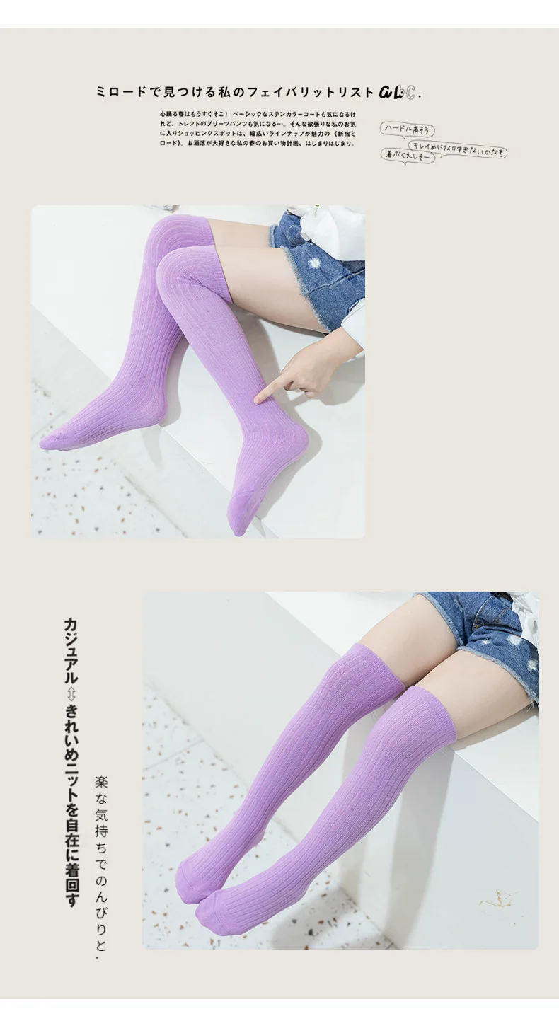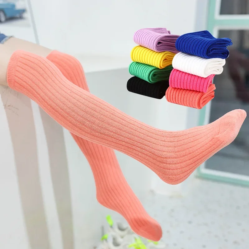 Children's High Knee Socks Kids Baby Cotton Candy Color Stockings Long Leg Warmers Cute Socks for Girl 3-12Y Children Clothes 3