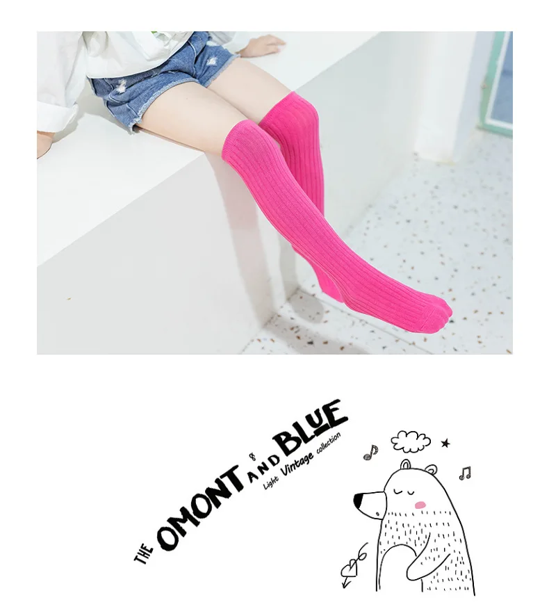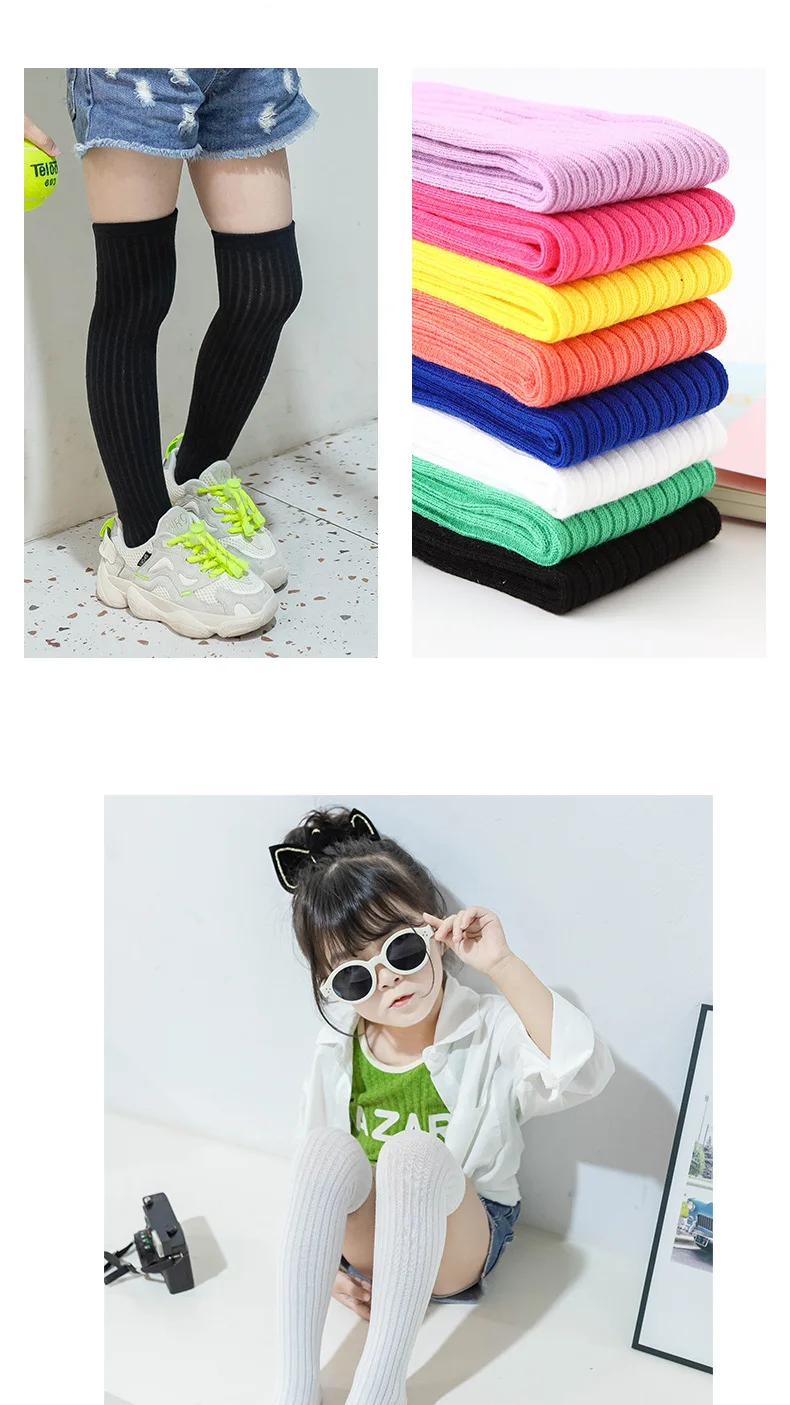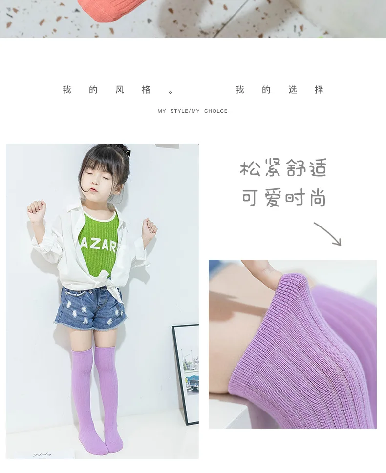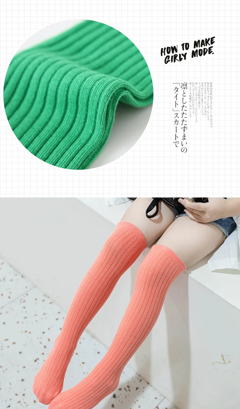 Children's High Knee Socks Kids Baby Cotton Candy Color Stockings Long Leg Warmers Cute Socks for Girl 3-12Y Children Clothes 3