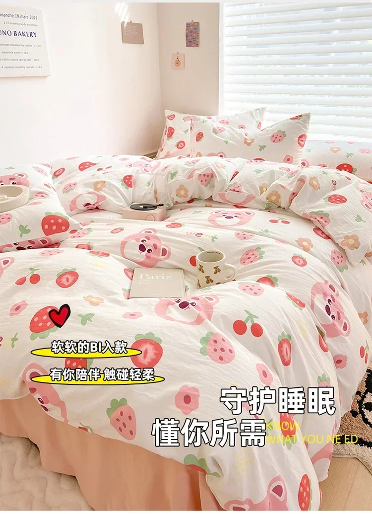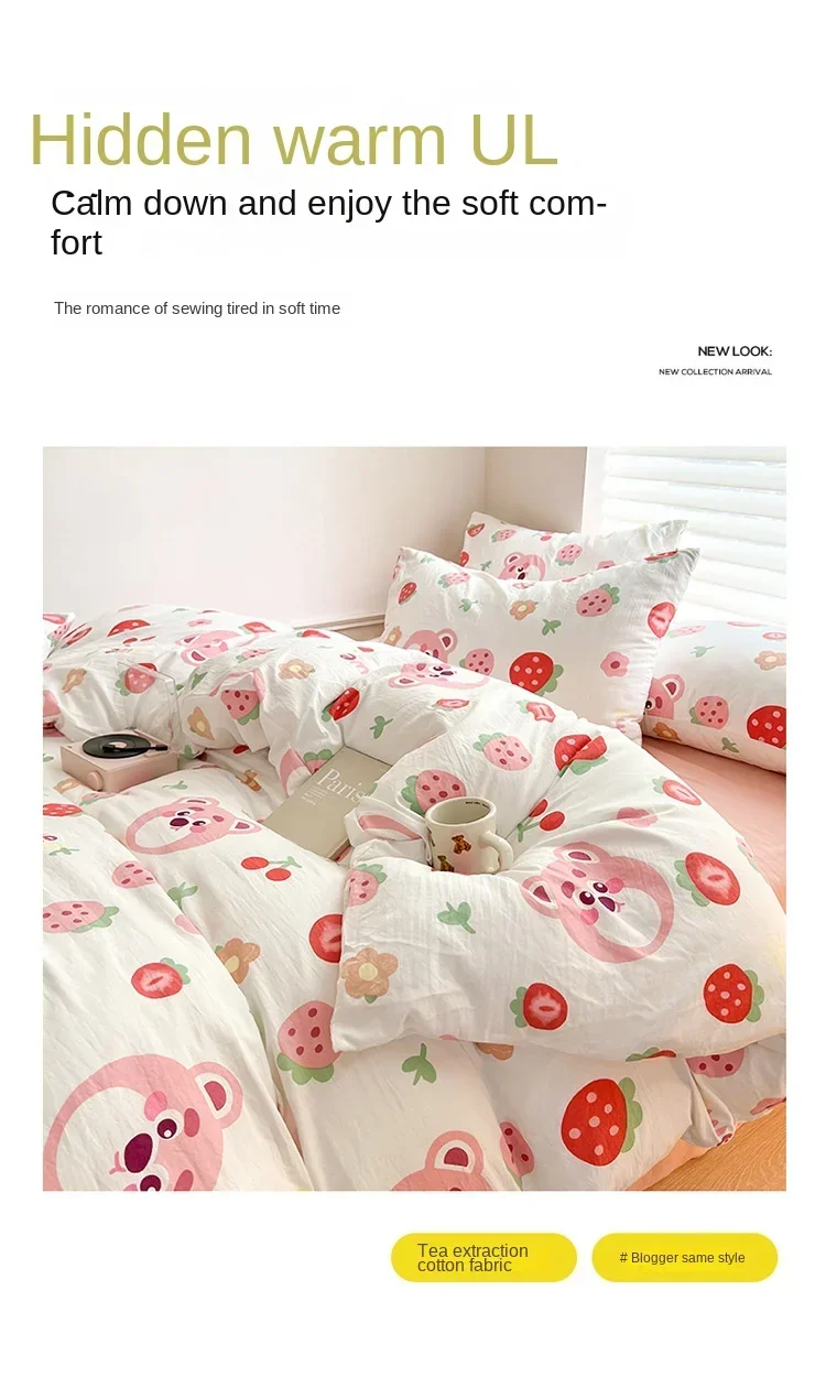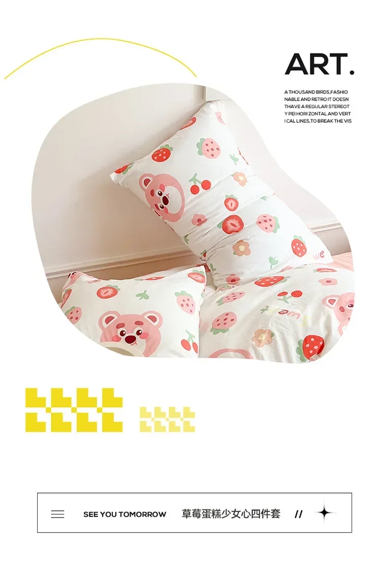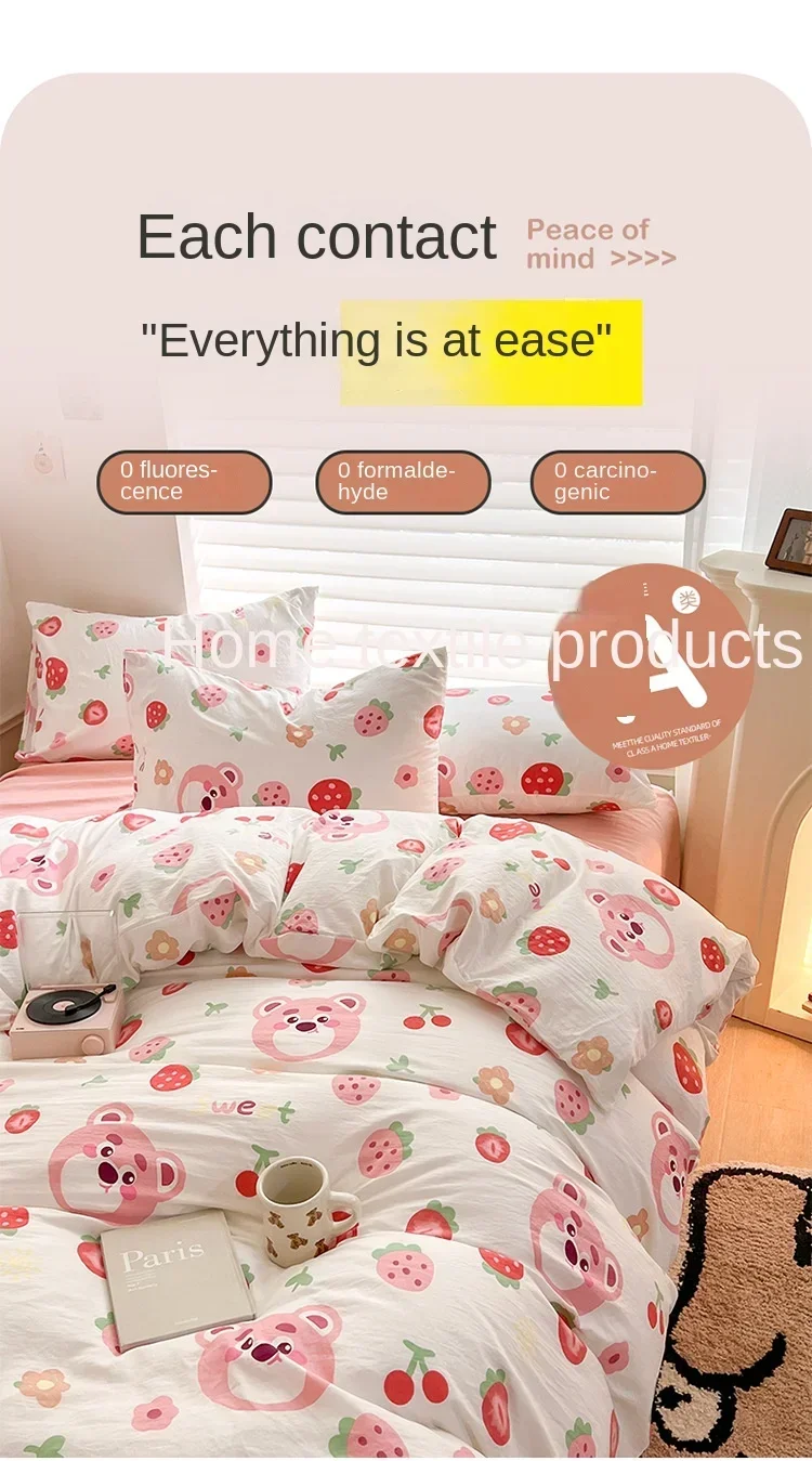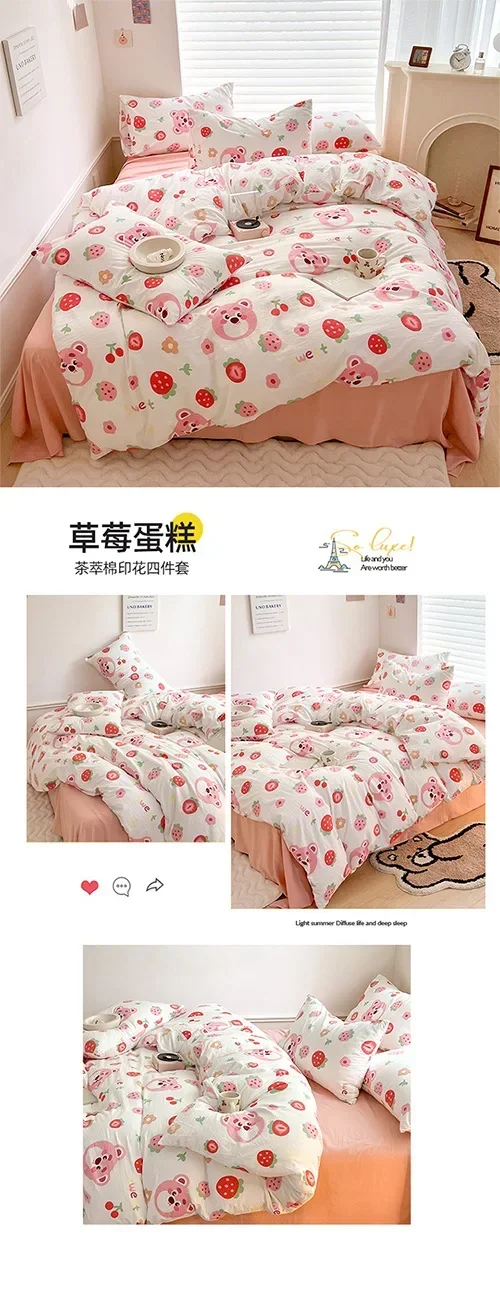Class A Double Layer Yarn Four Piece Bedding Set Cartoon Cute Bed Sheet Quilt Set Fitted Sheet Cotton Linen Four Piece Set 3