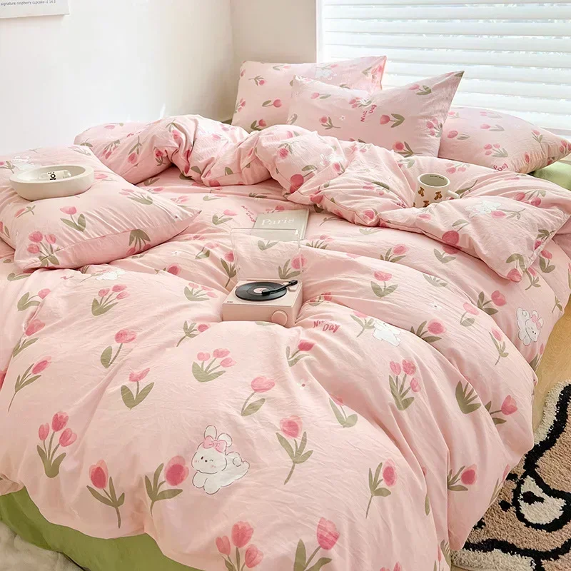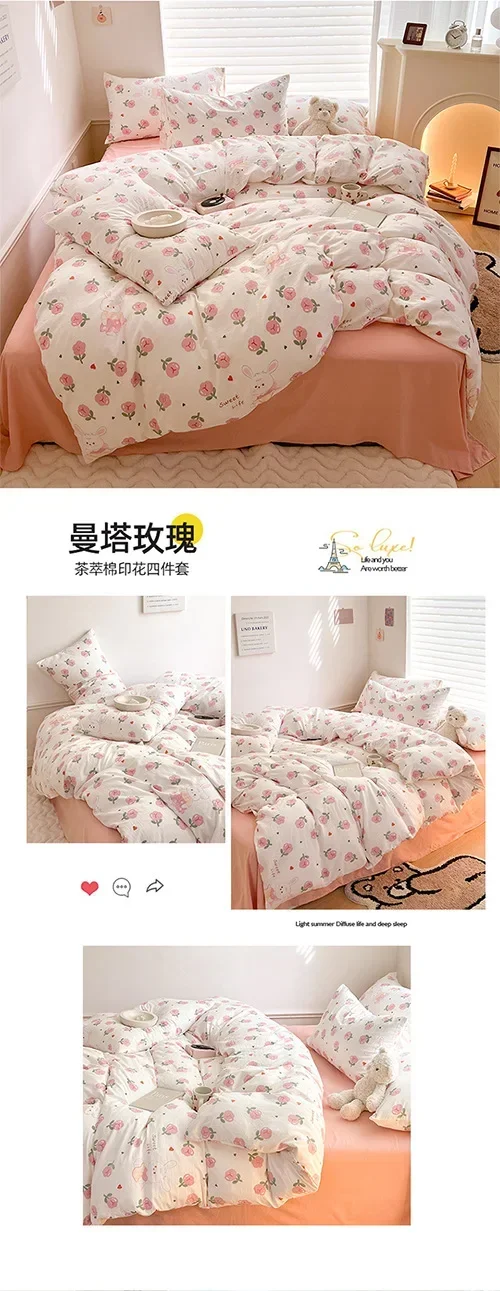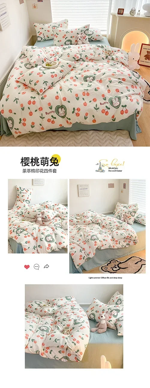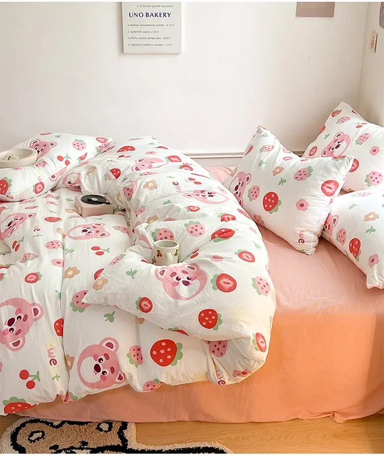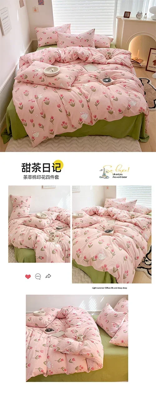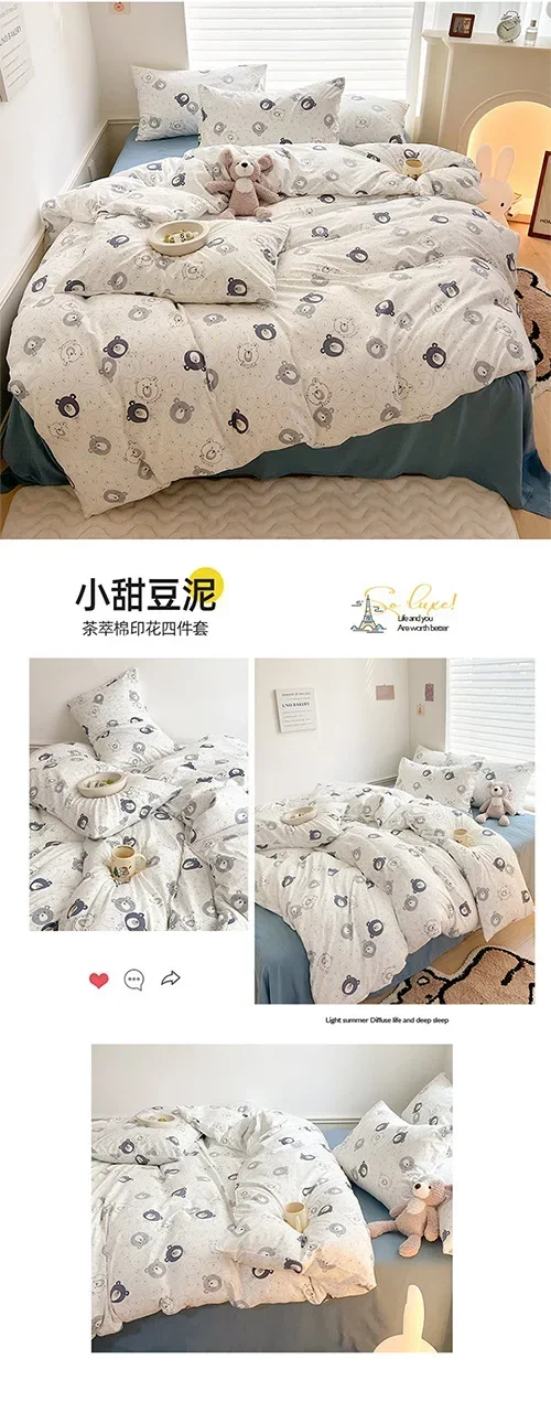 Class A Double Layer Yarn Four Piece Bedding Set Cartoon Cute Bed Sheet Quilt Set Fitted Sheet Cotton Linen Four Piece Set 3