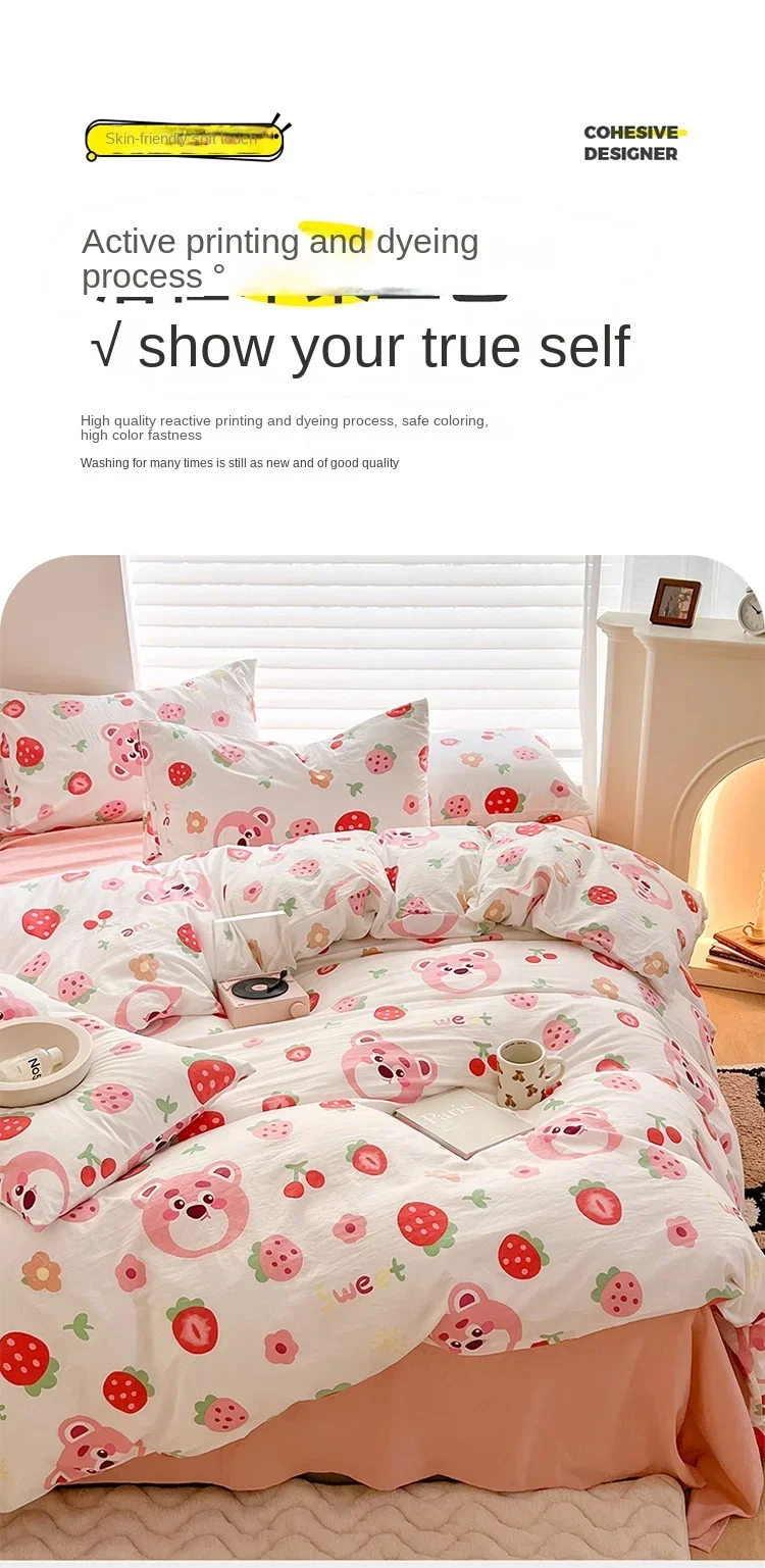 Be the first to review “Class A Double Layer Yarn Four Piece Bedding Set Cartoon Cute Bed Sheet Quilt Set Fitted Sheet Cotton Linen Four Piece Set” Cancel reply