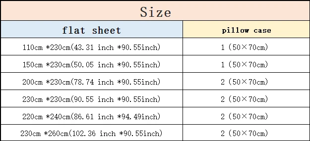 110cm*230 cm(43.31 inch *90.55inch)*1Pillow case