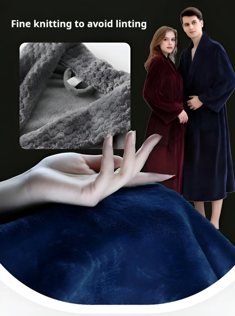 Coral velvet couple's comfortable winter bathrobe 6