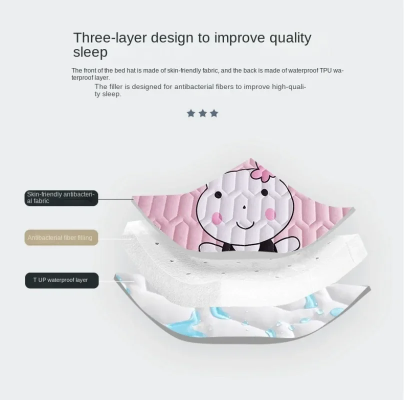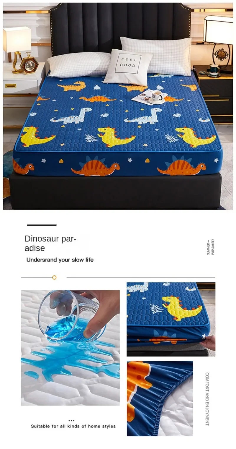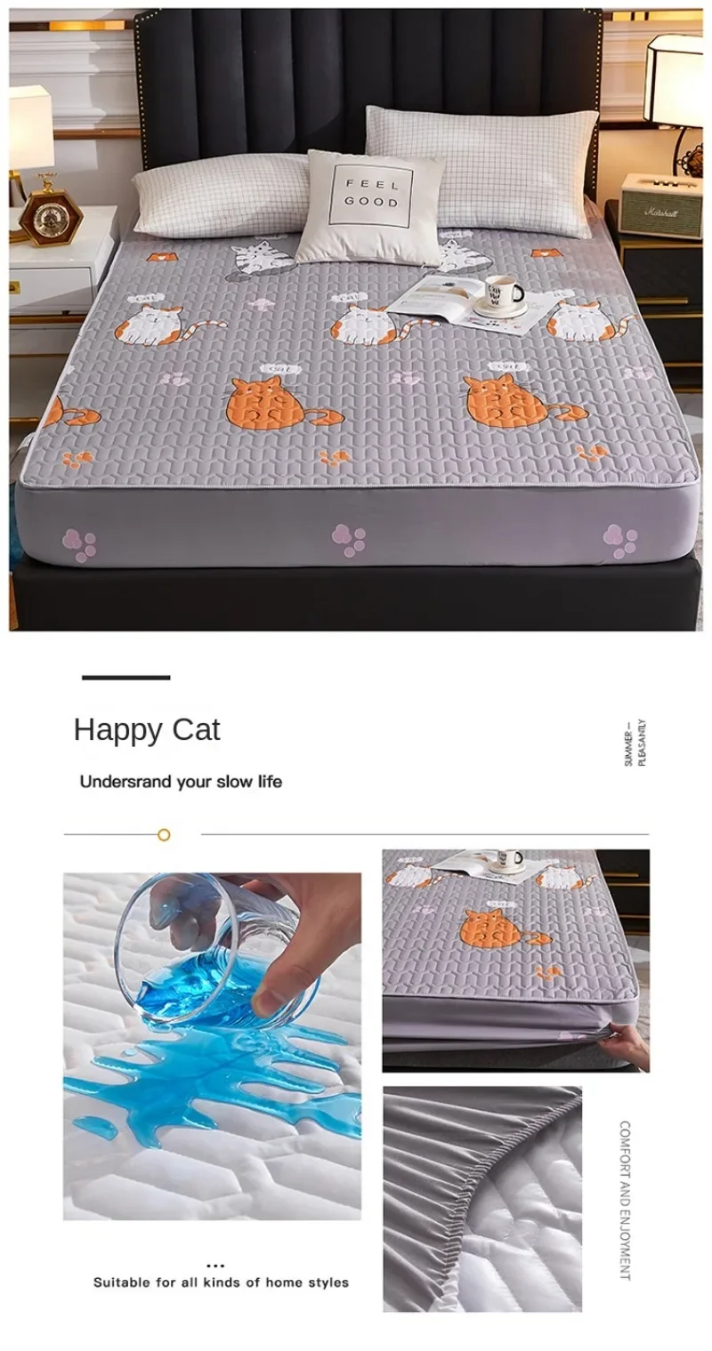Cotton Mattress Cover Waterproof Thickened Urine Cartoon Bed cover Family with Children and Pets Bedroom Protection Cover