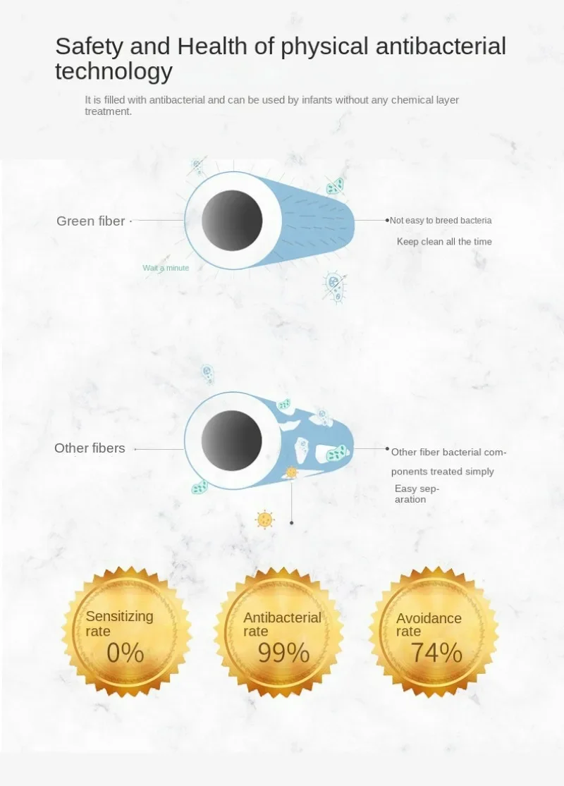 Fine antibacterial fibre filling, light and breathable for all seasons, effective antibacterial mite.