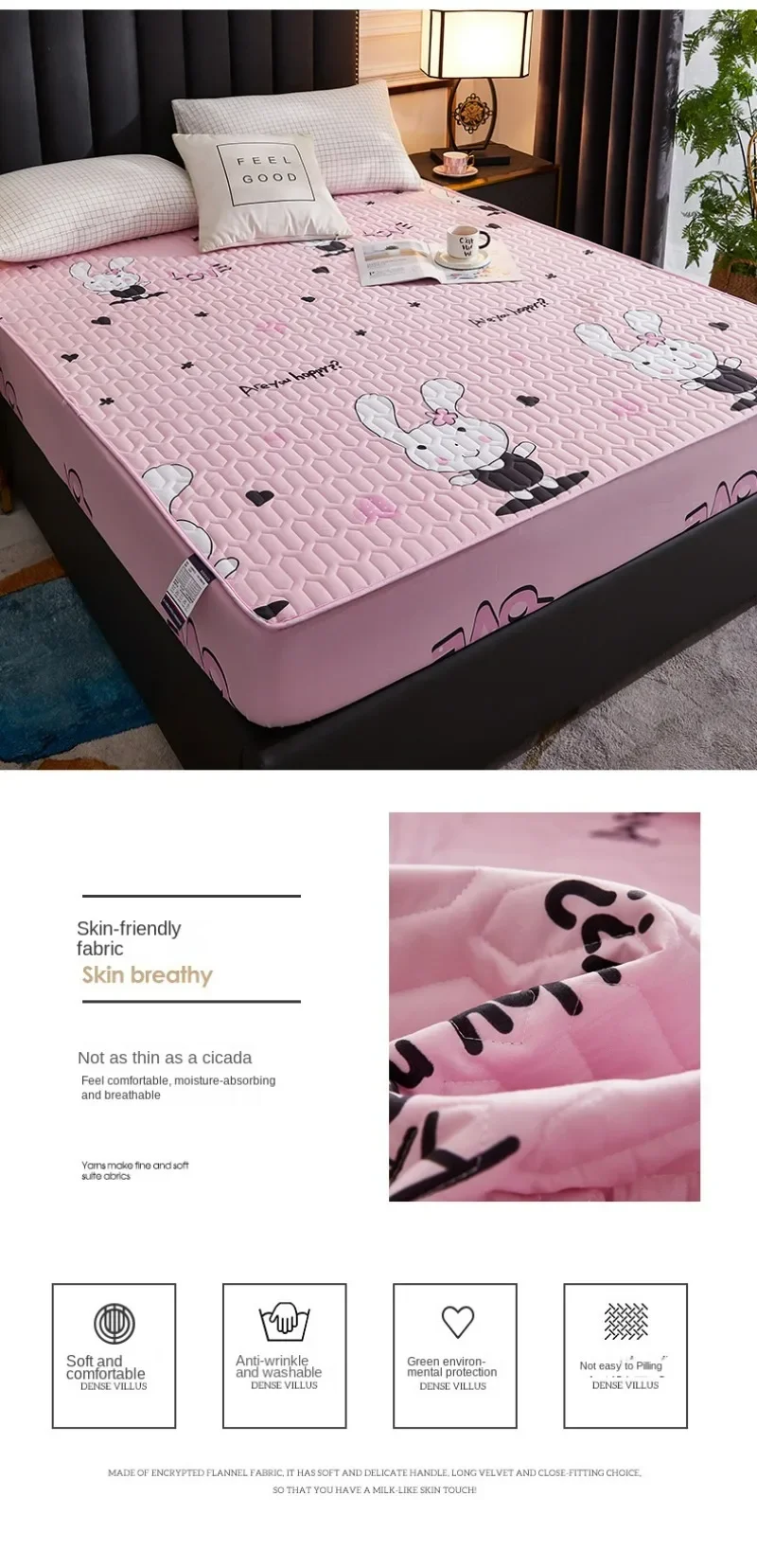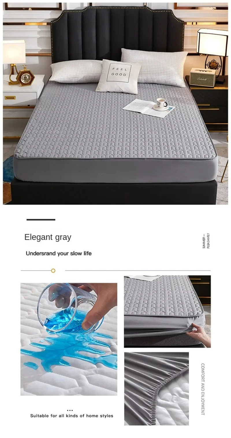 The front of the bedspread is made of skin-friendly fabric, the back of the bedspread is made of waterproof TPU waterproof layer, and the filling is designed with antibacterial fibre, which improves the quality of sleep.