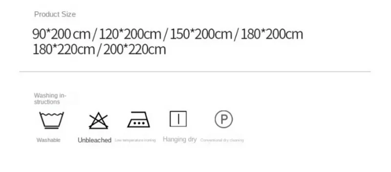 Size: 90x200cm, 100x200cm, 120x200cm, 140x200cm, 150x200cm, 160x200cm, 180x200cm, 180x220cm, 200x220cm, 200*200cm, Pillowcase 2pcs