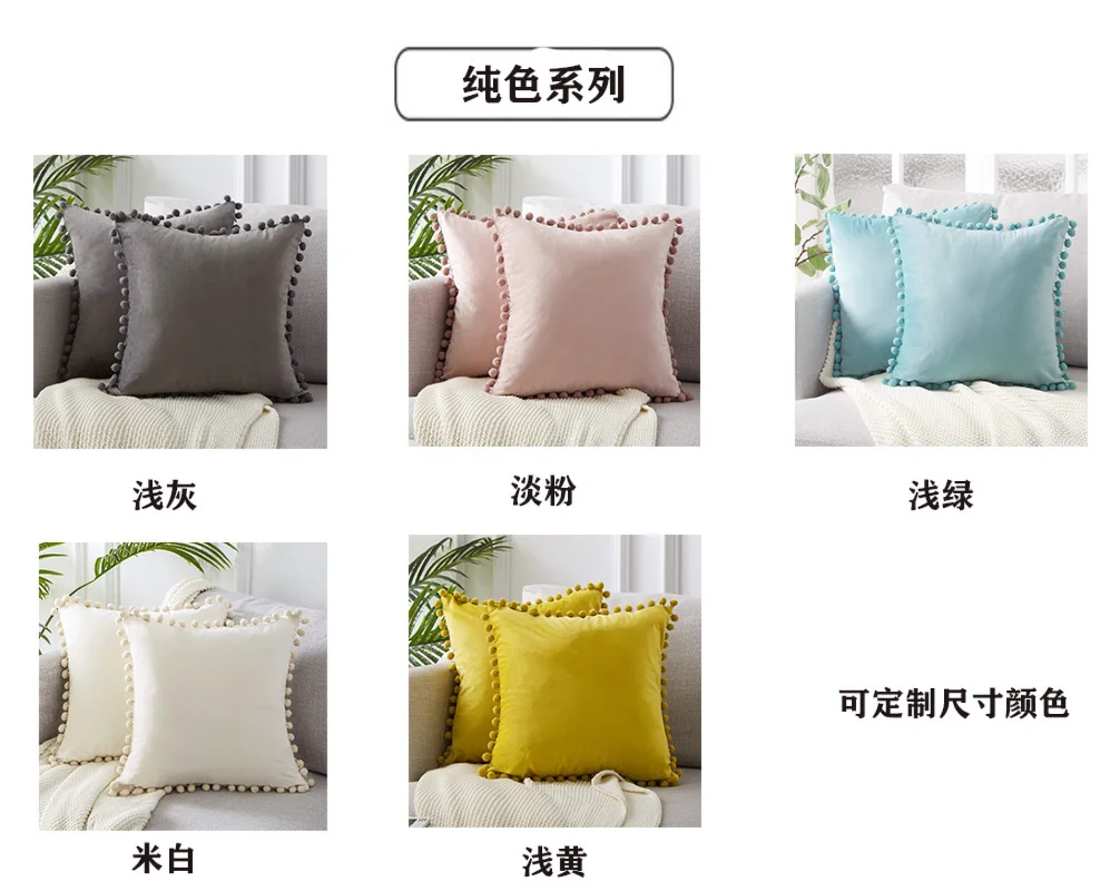 2023 soft plush velvet decorative cushion cover with ball home decor for sofa seat bedroom pillowcase pink yellow pillow covers