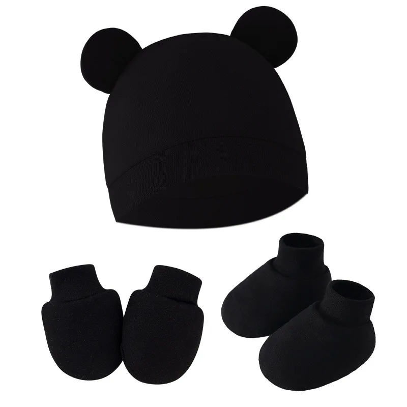 Cute Baby Hat Newborn Bonnet Gloves Socks Set Beanie Hats Ear Shape New Born Gift Photography Props Infant Fashion Accessories 1