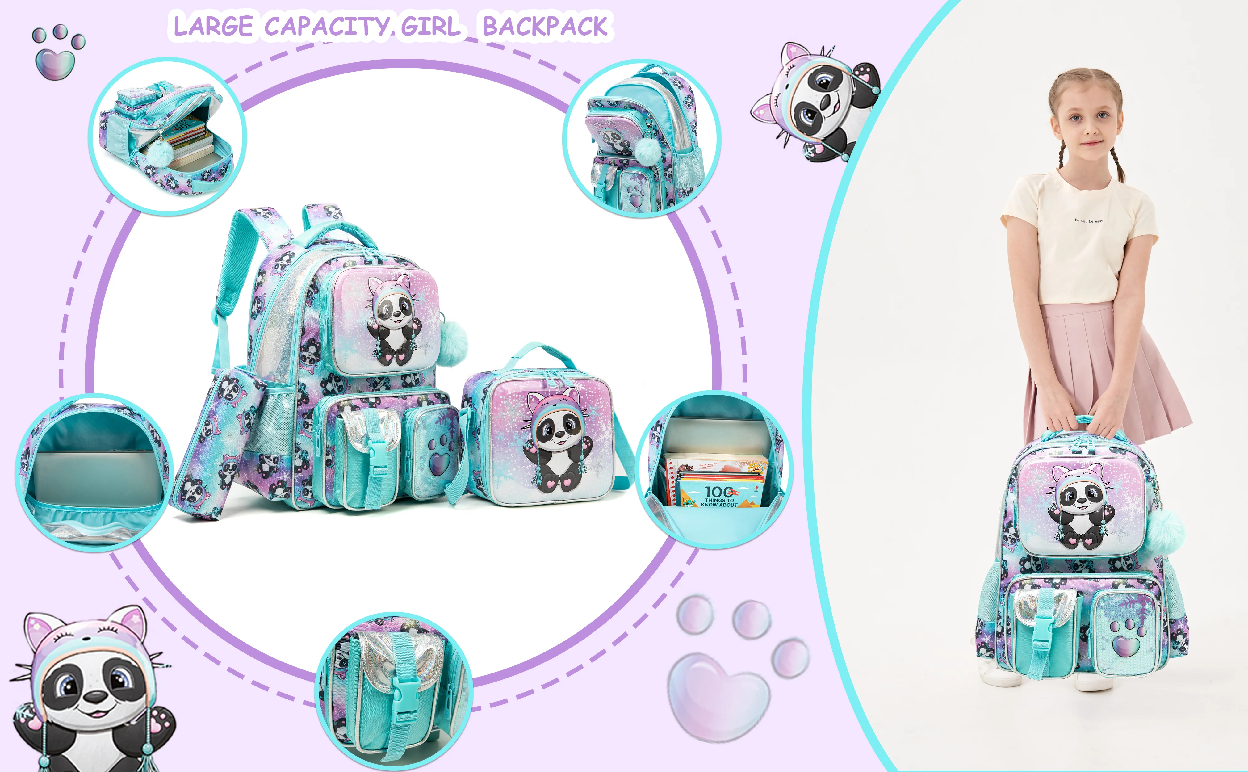 • [Girls Backpacks Wide Application]The lovely school backpack is ideal for various occasions like school, travel, hiking and camping ,tourism.This cute elementary student bookbag is the best choice for back to school, Christmas, New Year, Birthday gifts.