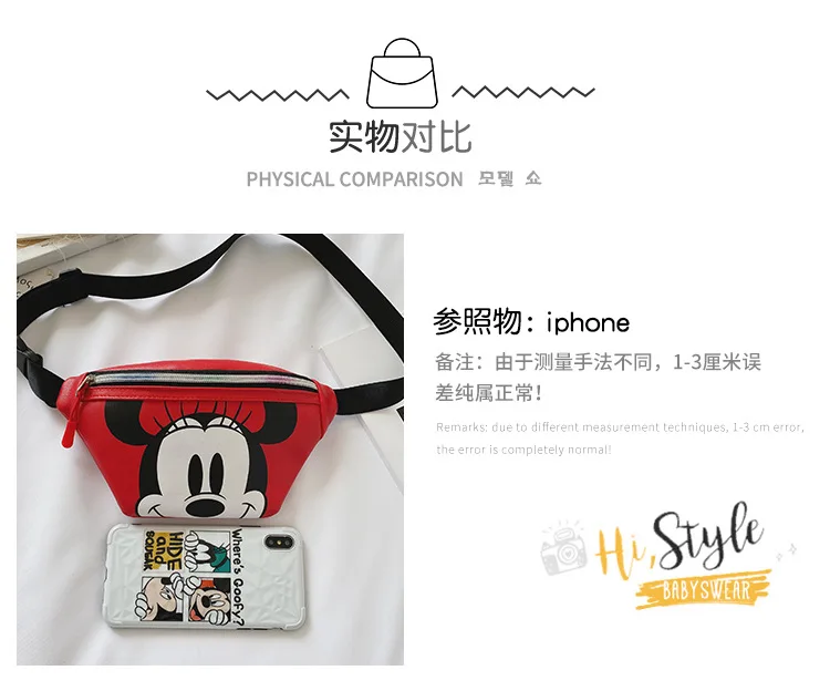 Disney children fashion waist bag boy girl cute cartoon kindergarten shoulder bag coin purse wild princess chest bag mickey bag 1