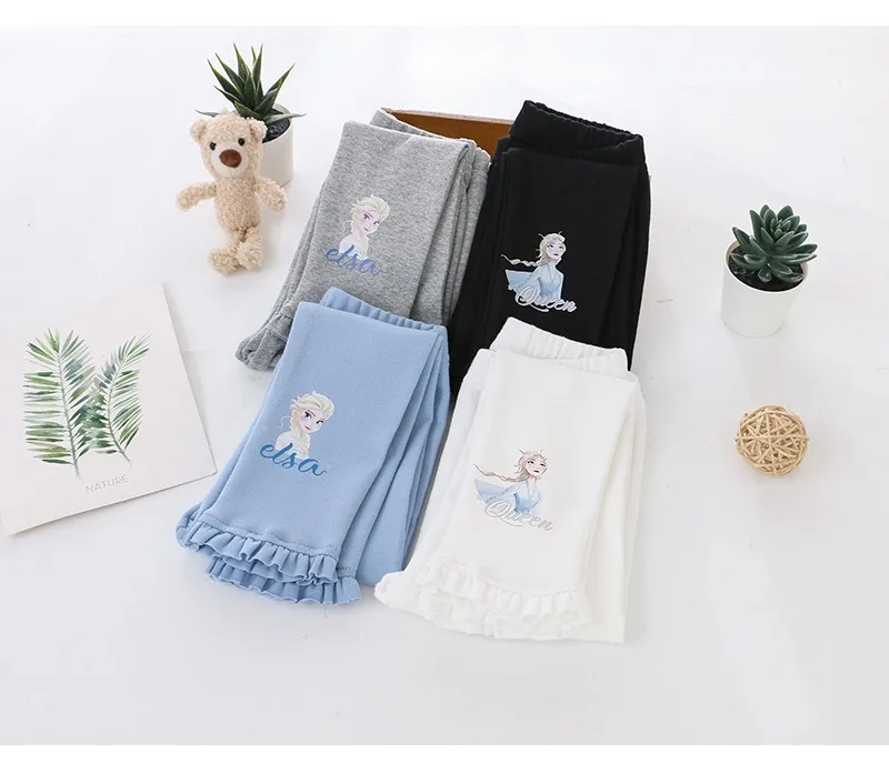 Disney Girl Pants Quality Cotton for Children Frozen Anna Elsa Autumn Baby Girl Pink Blue Trouser Kids Leggings Cartoon 2-8Y 1