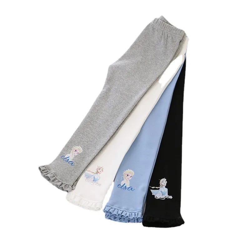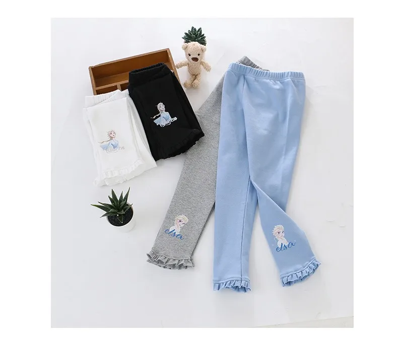 Disney Girl Pants Quality Cotton for Children Frozen Anna Elsa Autumn Baby Girl Pink Blue Trouser Kids Leggings Cartoon 2-8Y