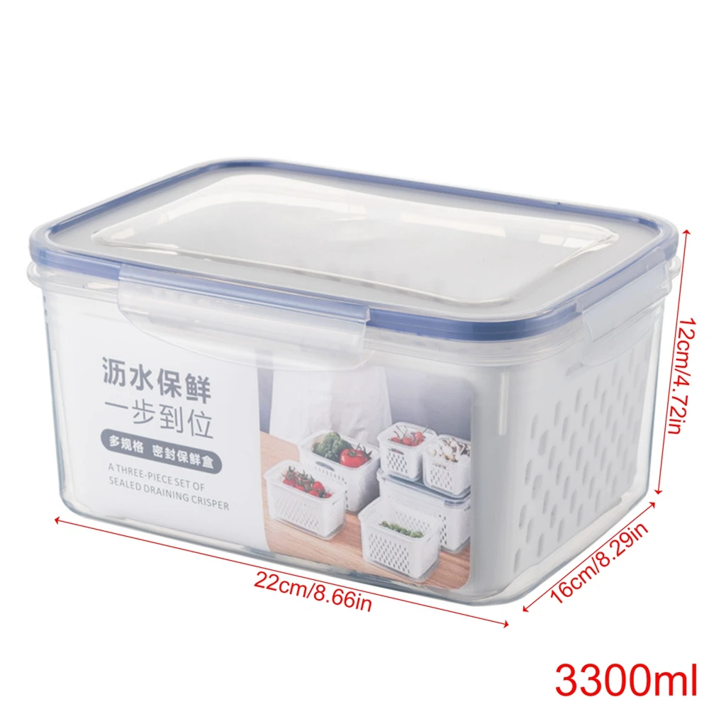 2.【Multifunctional Food Container】Our food container set includes a 850ML+1750ML+3300ML. 3 sizes of capacity are perfect for a variety of fruits, vegetables, meats.