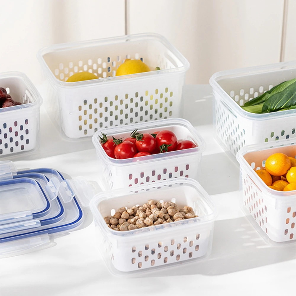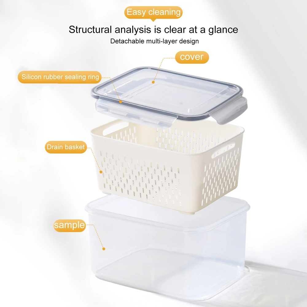3.【3 in 1 BPA Free Plastic Food Storage】Each preservation box consists of airtight lid + drain colander + thick and durable box. The colander is removable and can be used individually. Remove the colander and the storage box can be used alone. Easily solve the problems of cleaning, soaking, pre-cutting, and preservation of fruits, vegetables, and meat.
