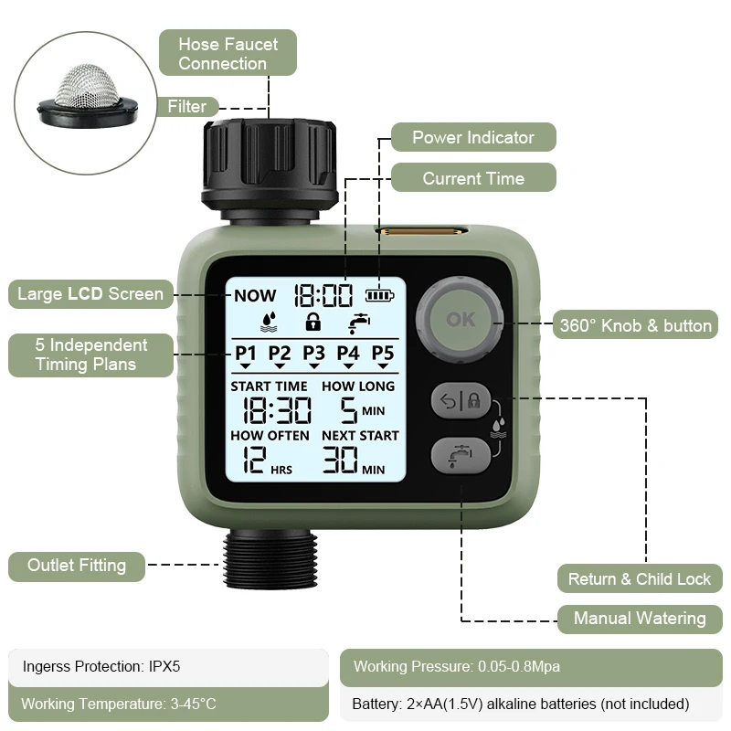 Garden Irrigation Timer LCD Display Watering Controller Weekly Daily Programming Greenhouse Potted Plants Automatic Sprinklers 1