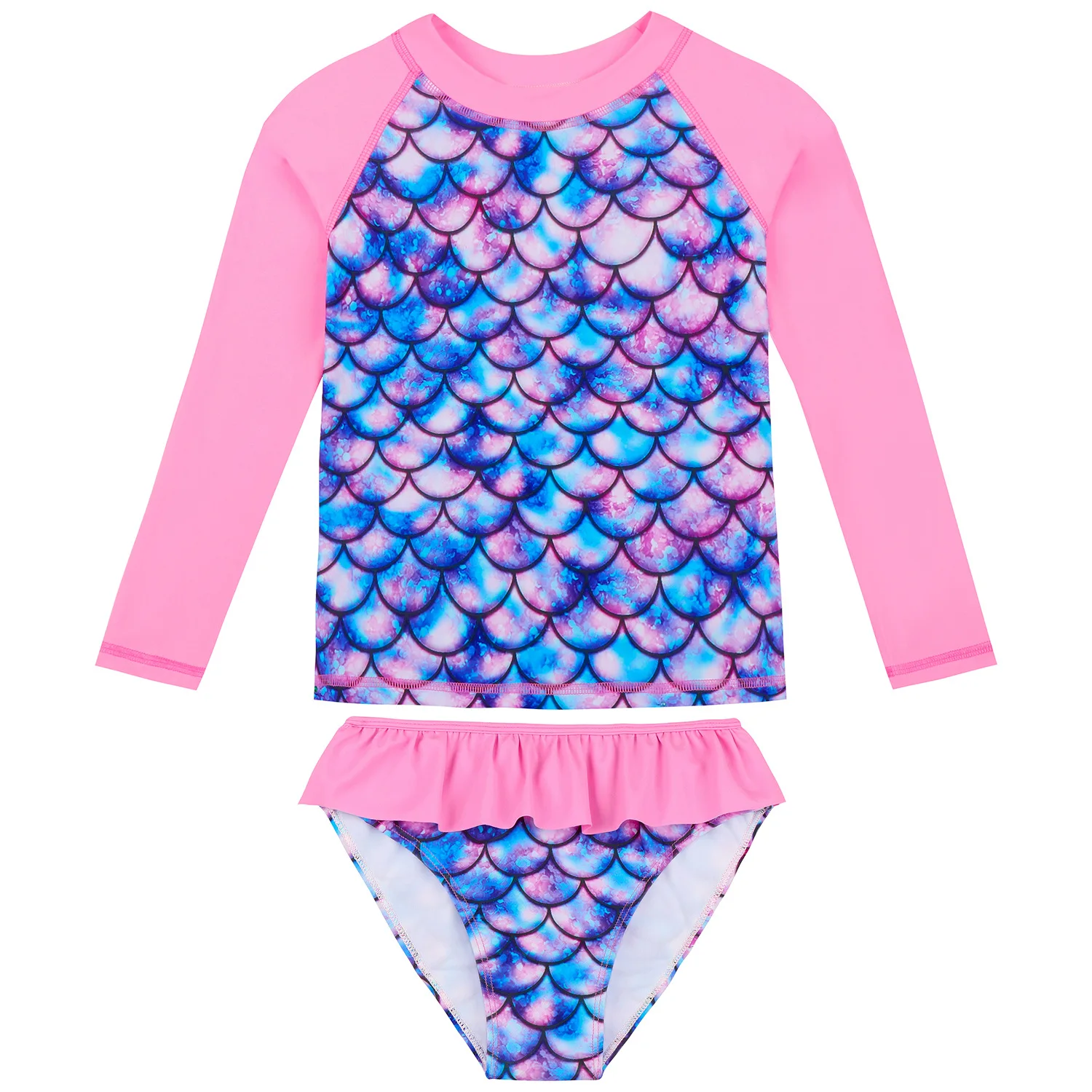 European And American Style Girls Long Sleeves Split Bathing Suit 3-9Years Kids Bikini Mermaids 3D Print Sunscreen Swimsuits 5
