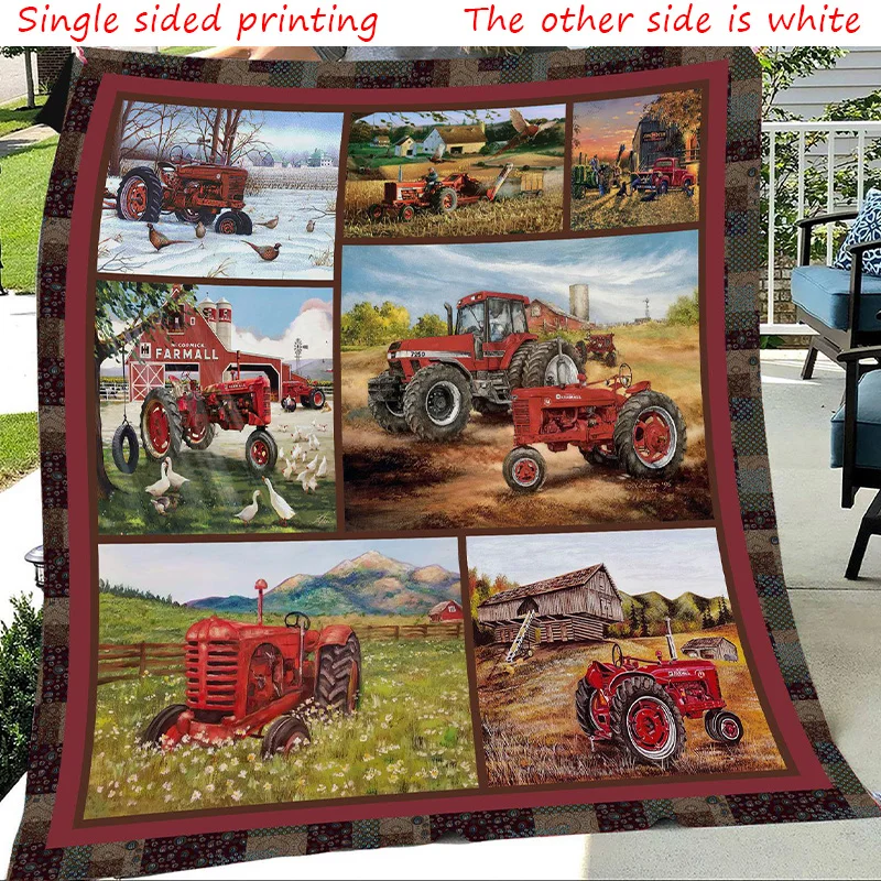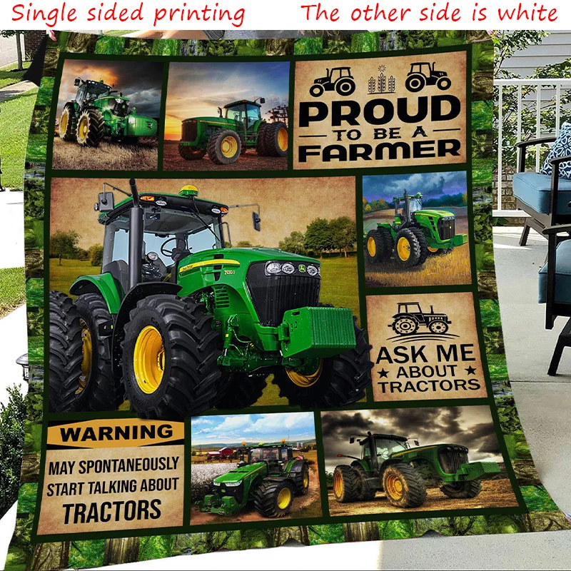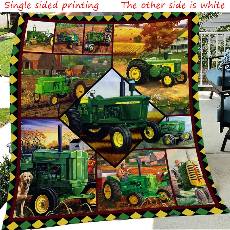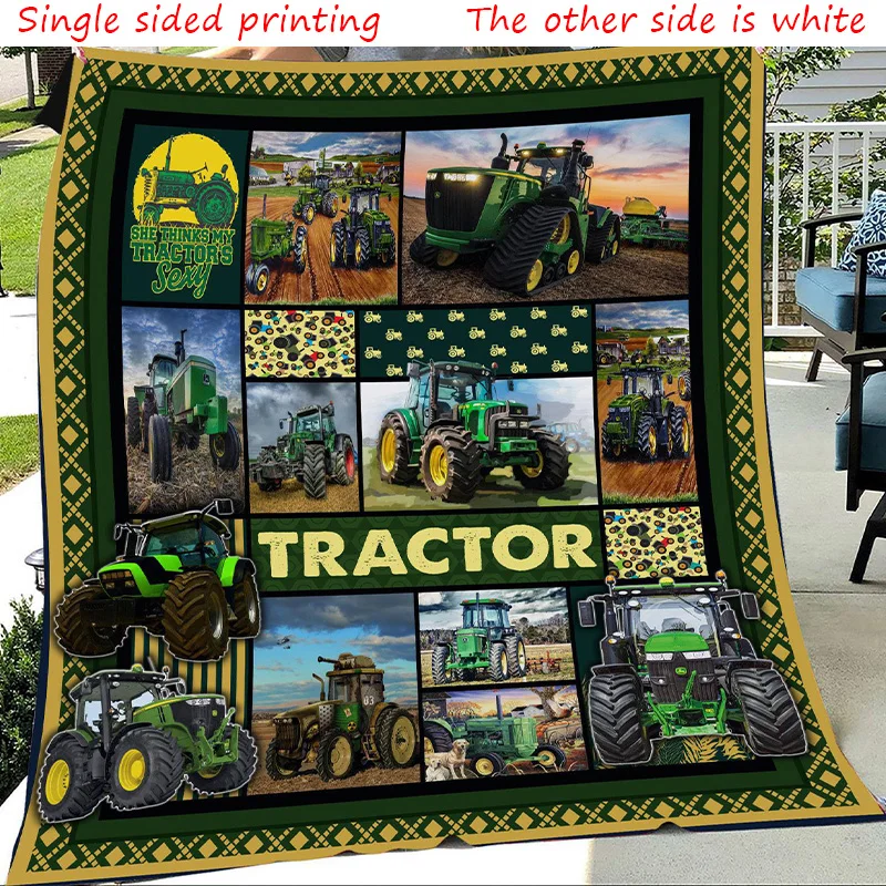 Flannel Tractor Blanket Farm Tractor Harvester Print Throw Blanket Lightweight Warm Boys Children Cartoon Bed Blankets Bedspread