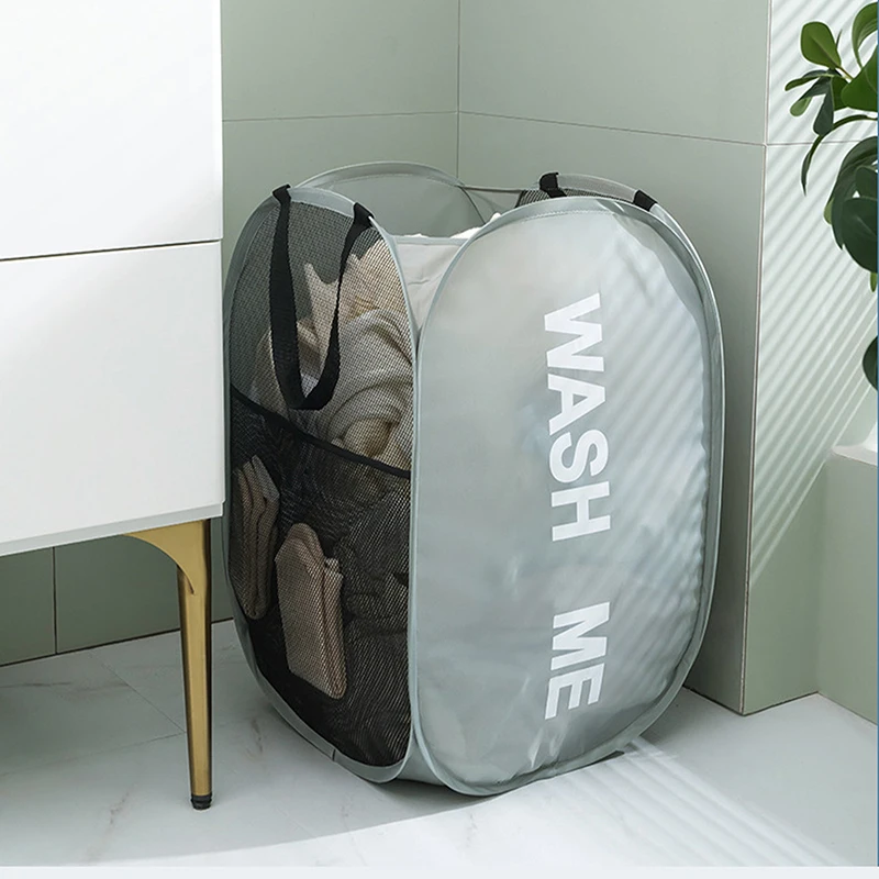 Folding Laundry Basket Organizer For Dirty Clothes Bathroom Clothes Mesh Storage Bag Household Wall Hanging Basket Frame Bucket 55 ₪ – 83 ₪