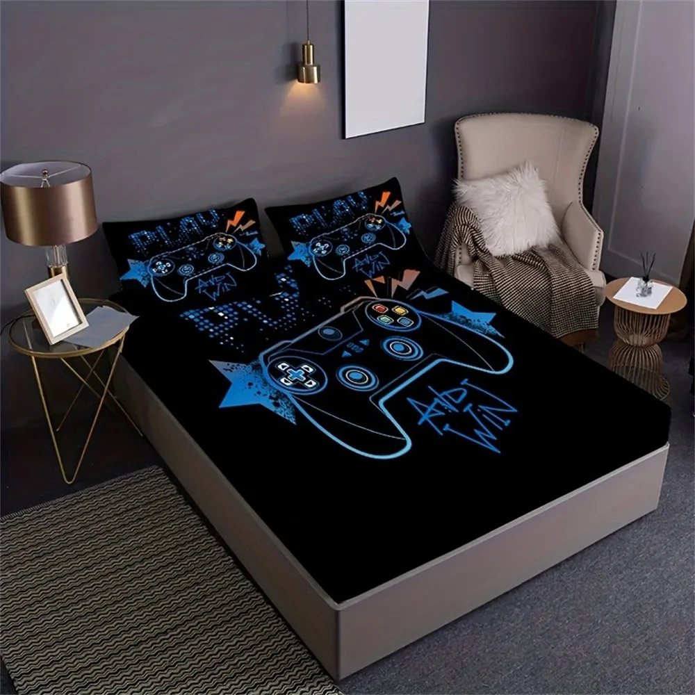 Home Home Bedding Sheet Sets Games 3D Print Fitted Sheet Set Soft Comfortable Breathable Game Pad Bedding Set for Bedroom Guest Room