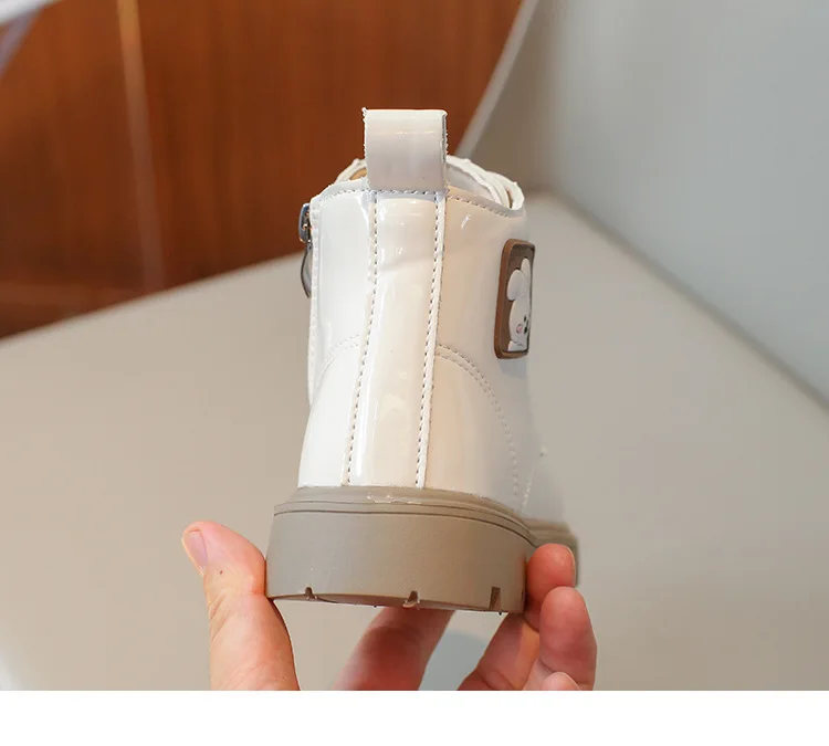 Girls Boots 2024 Fashion Rabbit Short Boots British Style Patent Leather Ankle Boots Spring Autumn Round Toe Low-Heel Kids Shoes 3