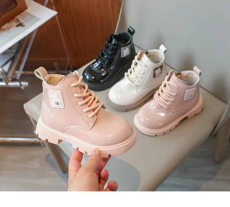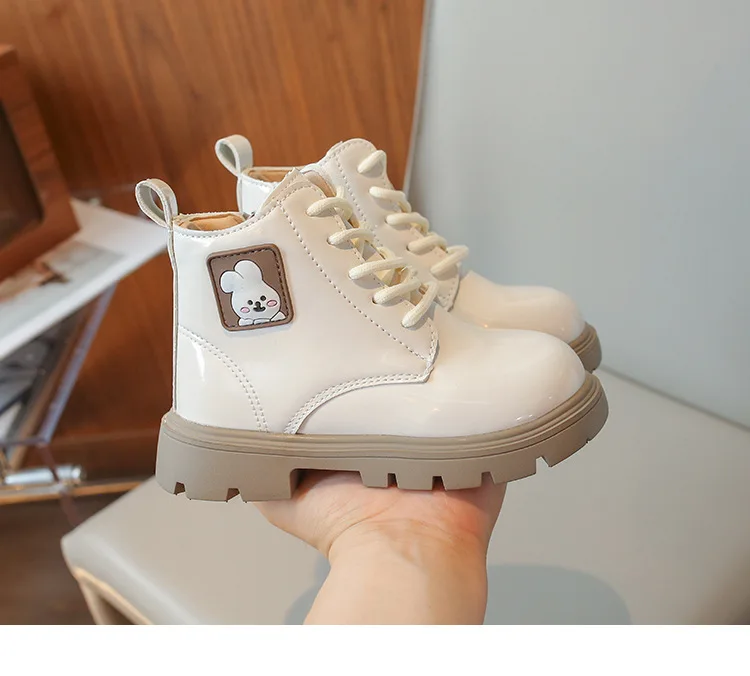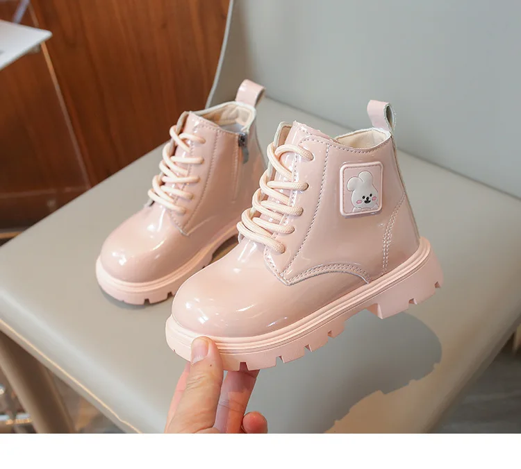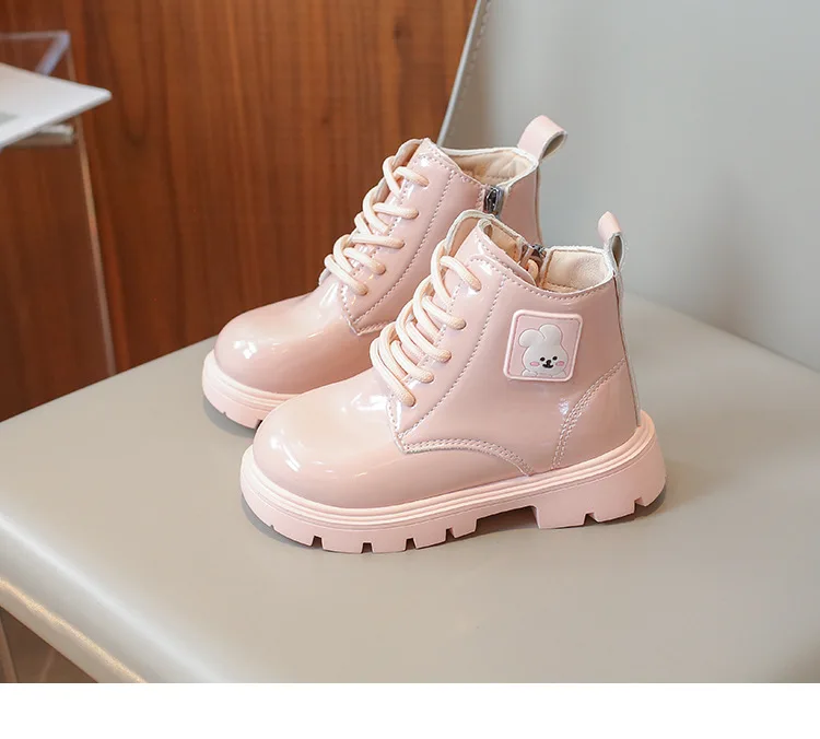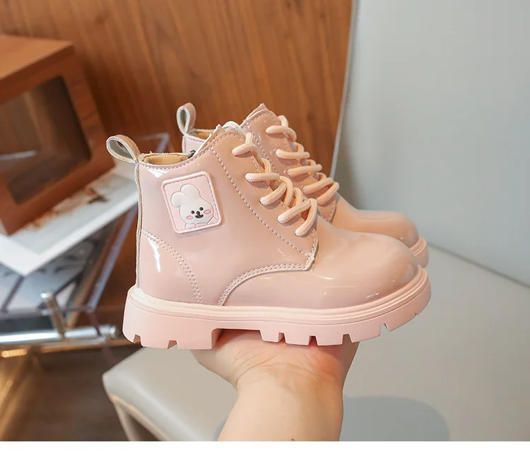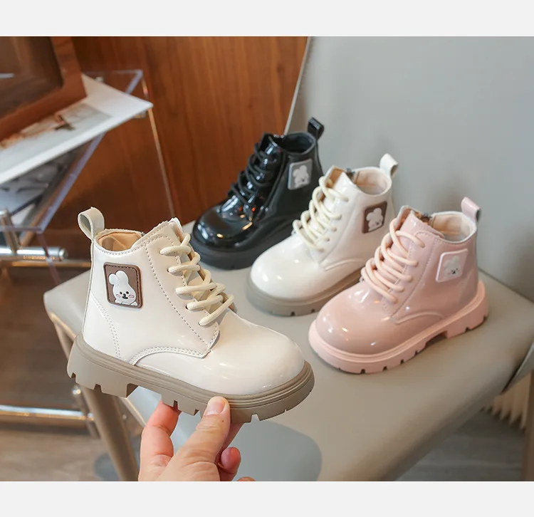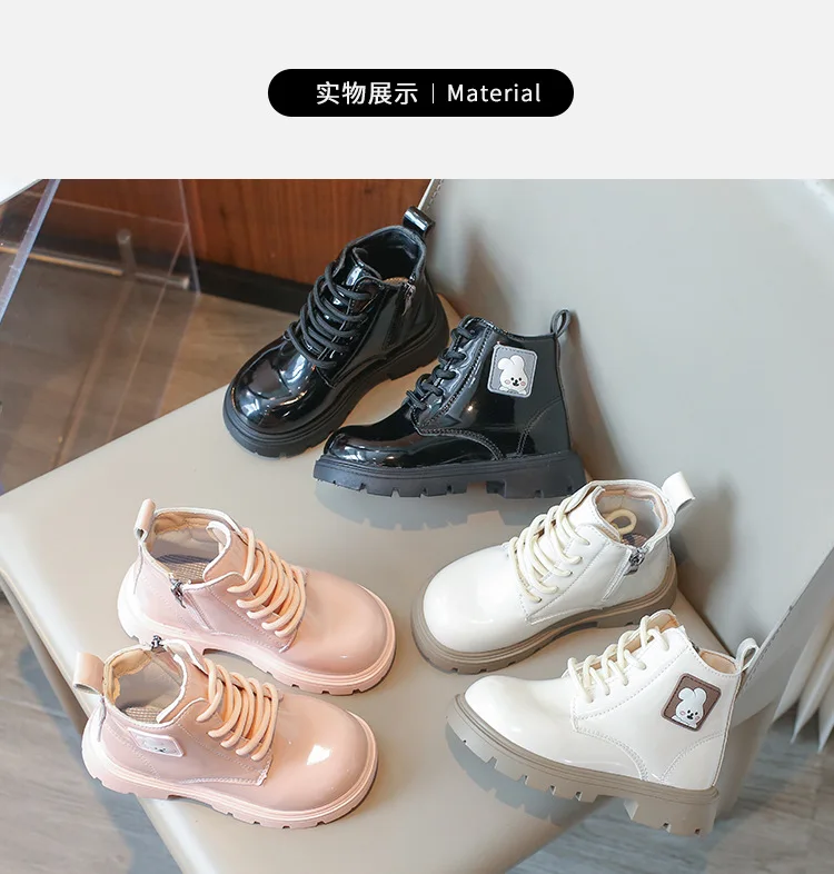 Girls Boots 2024 Fashion Rabbit Short Boots British Style Patent Leather Ankle Boots Spring Autumn Round Toe Low-Heel Kids Shoes 1