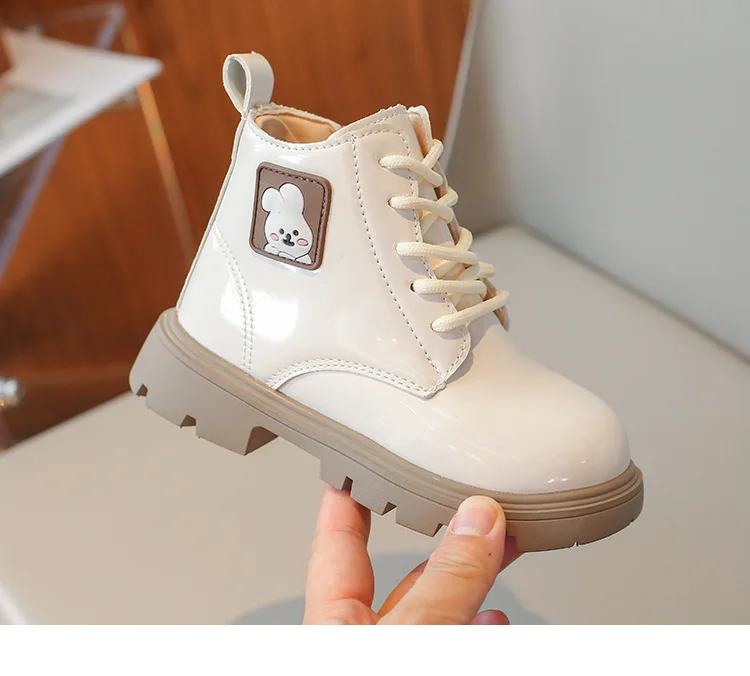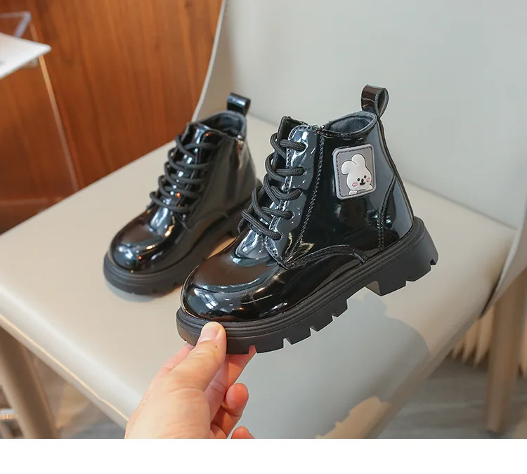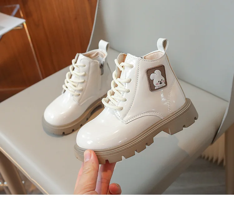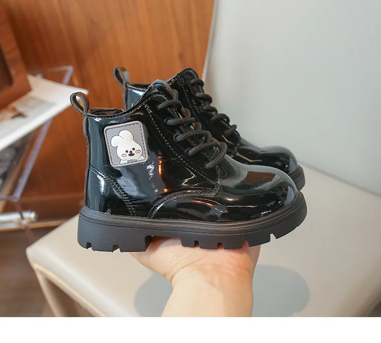 Girls Boots 2024 Fashion Rabbit Short Boots British Style Patent Leather Ankle Boots Spring Autumn Round Toe Low-Heel Kids Shoes 5