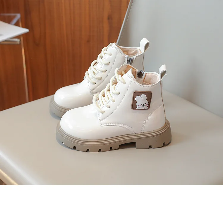 Girls Boots 2024 Fashion Rabbit Short Boots British Style Patent Leather Ankle Boots Spring Autumn Round Toe Low-Heel Kids Shoes 4