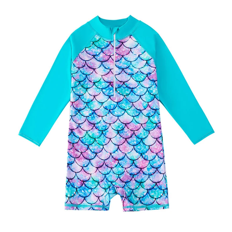 Girls Swimwear Kids Mermaid Swimsuit Suit for Pool /Hot Spring/Beach Long Sleeve One-Piece Rash Guard Swimwear 3-12 Years Old 2