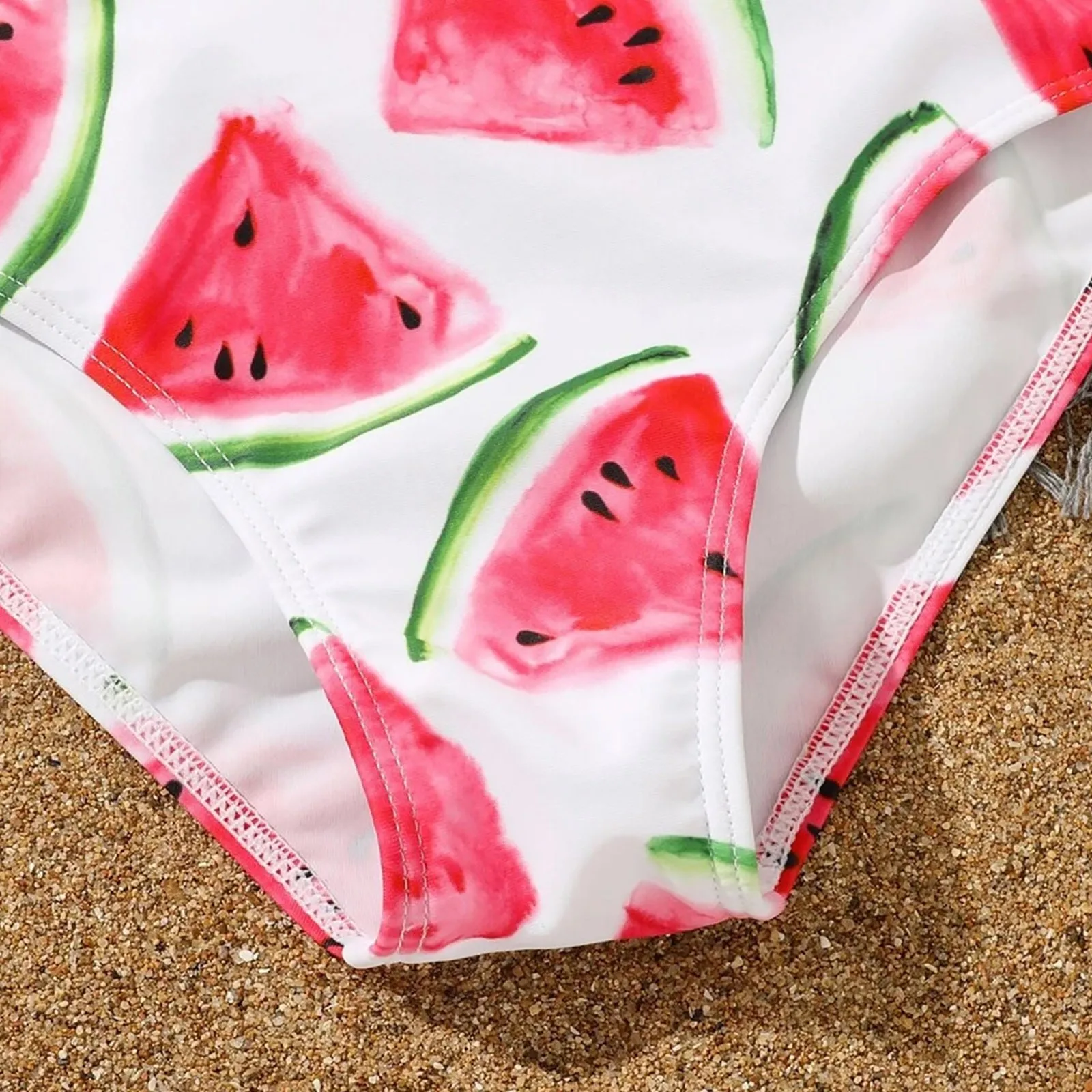 1-5Y Toddler Girls Swimsuits One Piece 2024 Fashion Beach Swimwear for Summer Bathing Suits Baby's Round Neck Ruffle Bath Bikini 1